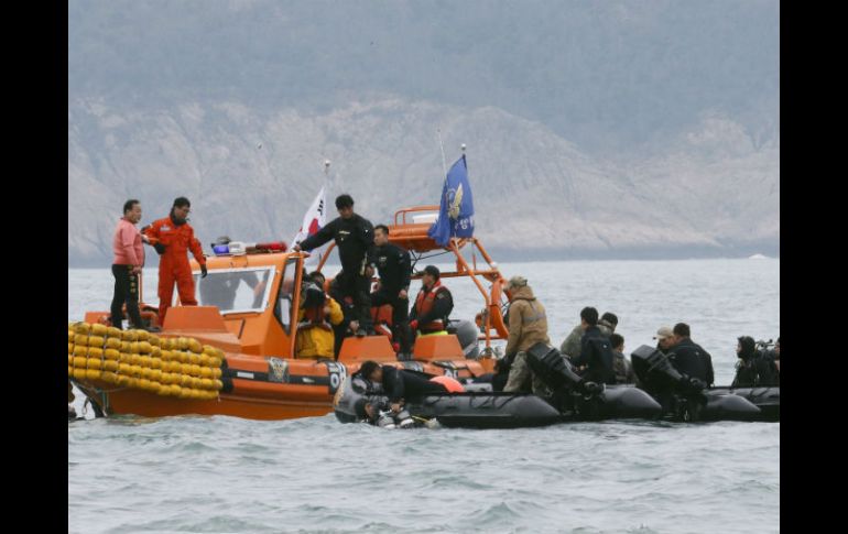 Tres veces seguidas y casi media hora después de que el barco comenzó a ladearse el miércoles, un tripulante preguntó al Centro de Tráfico Marítimo de Jindo (VTS) cuándo serían rescatados los pasajeros si abandonaban el ferry. Esto siguió a varios mensajes del barco de que era imposible para las personas a bordo moverse siquiera y otro donde dice que es "imposible transmitir" instrucciones.Muchas personas siguieron la orden inicial del capitán de permanecer bajo cubierta, donde se cree que quedaron atrapados. Unas 240 personas siguen desaparecidas."Aunque sea difícil de transmitir, por favor vaya y permita a los pasajeros se pongan chalecos salvavidas y más ropa", dijo un oficial no identificado del VTS a las 9:24 de la mañana, 29 minutos después de que el transbordador, el Sewol, reportase problemas por primera vez, de acuerdo con la transcripción dada a conocer por la guardia costera surcoreana."Si este ferry evacúa a los pasajeros, ¿ustedes podrán rescatarlos?", preguntó el integrante de la tripulación no identificado."¡Por lo menos ordene que se pongan los salvavidas y dígales que escapen!", fue la respuesta en tierra."Si este ferry evacúa a los pasajeros, ¿serán rescatados de inmediato?", preguntó otra vez el tripulante."¡No los deje ir descubiertos, al menos ordene que se pongan los salvavidas y que escapen!", volvió a responder el oficial del Centro de Tráfico Marítimo y luego agregó: "El rescate de vidas humanas... el capitán debe decidir y evacuarlos. No conocemos bien la situación. El capitán debe dar la orden final y decidir si van a evacuar a los pasajeros o no"."No estoy hablando de eso. Pregunté que si evacuamos ahora serán rescatados de inmediato", dijo la persona a bordo.Entonces el oficial en tierra le respondió que los barcos patrulla llegarían en 10 minutos, pero no mencionó que un navío civil ya estaba cerca y que 10 minutos antes le había dicho al centro marítimo que rescataría a quien estuviese a bordo.El Sewol se hundió el miércoles frente a la costa de Corea del Sur, pero los buzos ingresaron apenas el domingo a la nave debido a la fuerza de las corrientes y la visibilidad deficiente a causa del mal tiempo.Cuando los buzos rompieron una ventana y entraron, encontraron cadáveres en diversos lugares, dijo el oficial de la guardia costera Koh Myung-seok en una sesión informativa.Trece cadáveres fueron encontrados en la nave, mientras que otros seis fueron recuperados flotando en el exterior.El sábado fue arrestado el capitán Lee Joon-seok, por supuesta negligencia y abandono de personas en apuros. Dos miembros de la tripulación también fueron detenidos, incluida una tercera oficial, de 25 años, que según los fiscales conducía la embarcación en aguas difíciles y que no conocía cuando ocurrió el accidente.El Sewol se hundió cuando iba del puerto de Incheon a la isla turística sureña de Jeju con 476 personas a bordo, incluso 323 estudiantes de la secundaria Danwon en Ansan. Sólo hay 174 sobrevivientes.