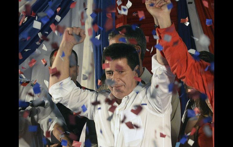 Internacional | Con 45.9 por ciento de votos, el candidato presidencial colorad es el ganador Tribunal Electoral oficializa triunfo de Cartes Con 45.9 por ciento de votos, el candidato presidencial colorado Horacio Cartes es el ganador de los comicios de Paraguay Por: EFE 21 de abril de 2013 - 20:37 hs ASUNCIÓN, PARAGUAY (21/ABR/2013).- El candidato presidencial colorado Horacio Cartes "es el ganador" de las elecciones de hoy en Paraguay, confirmó el presidente del Tribunal Superior de Justicia Electoral (TSJE), Alberto Ramírez Zambonini. En rueda de prensa posterior a la admisión pública de derrota del liberal Efraín Alegre, Zambonini anunció formalmente que "el señor Horacio Cartes es el nuevo presidente de Paraguay". Acto seguido, el asesor del TSJE Luis Alberto Ljubetic confirmó que Cartes obtuvo el 45,91 por ciento de los votos y Alegre el 36.84, según datos correspondientes al escrutinio del 81.06 por ciento de los sufragios. La participación alcanzó el 68.37 por ciento de los 3.5 millones de electores, informó. El tercer candidato, el socialista Mario Ferreiro, consiguió el 5.69 por ciento de los sufragios, seguido por el 3.43 por ciento de Aníbal Carrillo, aspirante del izquierdista Frente Guasú que lidera el destituido presidente Fernando Lugo. Zambonini y Ljubetic comparecieron ante los periodistas para dar los resultados oficiales media hora después de que el propio Alegre asumiera públicamente que había perdido las elecciones y diez minutos después de que Cartes agradeciera a Dios por su victoria en un mensaje de su cuenta de Twitter. El novedoso sistema digitalizado implantado por primera vez para estos comicios por el TSJE, que prometía un volcado on-line en tiempo real de las papeletas escrutadas, falló al poco tiempo de ponerse en funcionamiento. El sistema quedó "colapsado", según un portavoz del tribunal, retornando todos los datos a cero, y sólo volvió a funcionar minutos antes de aparecer Zambonini para la rueda de prensa. Además de su presidente y vicepresidente, los paraguayos elegían hoy a los 80 diputados y 45 senadores de su Legislativo, los 18 representantes del país en el Parlamento del Mercosur y las autoridades departamentales. De momento, el TSJE sólo ha facilitado los datos de los comicios presidenciales. Temas América Latina Paraguay Elecciones Paraguay Recibe las últimas noticias en tu e-mail Todo lo que necesitas saber para comenzar tu día Registrarse implica aceptar los Términos y Condiciones