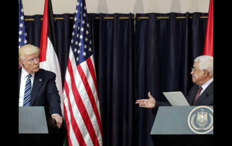 JERUSALÉN, TERRITORIOS PALESTINOS (23/MAY/2017).- El presidente de Estados Unidos, Donald Trump, manifestó frente al líder palestino Mahmud Abbas, en Belén, Cisjordania, que va a "hacer todo lo posible" para ayudar a israelíes y palestinos a lograr la paz.En rueda de prensa, junto al presidente de la Autoridad Nacional Palestina (ANP), el mandatario estadounidense aseguró que la paz no puede surgir donde se recompensa la violencia."La paz nunca puede arraigar en un lugar donde la violencia es tolerada, financiada e incluso recompensada", señaló el mandatario estadounidense, al resaltar que su homólogo palestino "se ha comprometido a tomar medidas firmes y necesarias para luchar contra el terrorismo".En repetidas ocasiones, Trump había señalado que alcanzar la paz en la región "no es tan difícil como parece", pero cambió este discurso en Jerusalén para admitir que es una tarea complicada."Estoy verdaderamente esperanzado de que Estados Unidos pueda ayudar a Israel y a los palestinos a forjar la paz y traer nueva esperanza a la región ya su gente", afirmó Trump."Si los israelíes y los palestinos pueden hacer la paz, comenzará un proceso de paz en todo el Medio Oriente", apuntó Trump sin elaborar ningún plan para reanudar las conversaciones.A su vez, Abbas comentó que los palestinos "están comprometidos a trabajar con (Trump) para alcanzar un acuerdo histórico de paz entre nosotros e Israel", agregando que "el principal problema es con la ocupación y los asentamientos".Trump aprovechó la ocasión para expresar sus condolencias a las familias de las víctimas del atentado contra un concierto de la cantante Ariana Grande en Manchester y calificó a los responsables del ataque como unos "malditos fracasados".El mandatario estadounidense llegó a la ciudad cisjordana de Belén para entrevistarse con el presidente palestino, sobre las posibilidades de reiniciar un proceso de paz con Israel. La comitiva oficial llegó a la Muqata, el palacio presidencial, a las 09:58 horas (06:58 GMT).Los vehículos de la comitiva redujeron la velocidad cuando se acercaban al puesto de control militar israelí de la Tumba de Raquel y, tras cruzarlo, recorrieron la avenida decorada con banderas palestinas y estadounidenses y con carteles con la imagen de Trump y Abbas y el mensaje: "La Ciudad de la Paz da la bienvenida al Hombre de la Paz"."La presencia de seguridad a lo largo de la ruta hacia Cisjordania era sobresaliente, incluso para los estándares habituales de protección presidencial", aseguró un periodista que viaja con la comitiva.Los principales accesos de seguridad amanecían esta mañana con un enorme dispositivo de seguridad y la policía palestina había cortado totalmente el tráfico a lo largo de la principal avenida que cruza la urbe (la carretera Jerusalén-Hebrón) y varias calles adyacentes.La breve visita a Belén ocurrió un día después de que Trump se reunió con el primer ministro israelí, Benjamin Netanyahu, mientras los palestinos realizaban una huelga general en apoyo a cientos de prisioneros en huelga de hambre detenidos en cárceles israelíes.