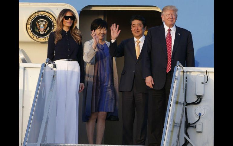 MIAMI, ESTADOS UNIDOS (11/FEB/2017).- El presidente de EU, Donald Trump, y el primer ministro japonés, Shinzo Abe, de visita en el país, acudieron a un club de golf de Palm Beach (Florida), mientras que sus esposas visitaron un museo local.A las 09:26 hora local (14:26 GMT), Trump y Abe arribaron al Trump National Jupiter Golf Club & Spa, en el norte de Palm Beach y en donde está previsto que ambos pasen la mañana jugando golf.Antes de su llegada al club, la comitiva pasó por una intersección de calles en donde unos 25 opositores al mandatario estadounidense gritaron consignas en su contra y con cárteles en los que se leía "Alto al odio", "Resistir" y "El poder de las personas es más fuerte que las personas en el poder".Mientras, sobre las 09:00 hora local (14:00 GMT), la primera dama de EU, Melania Trump, y la esposa del primer ministro japonés, Akie Abe, arribaron al museo y Jardines Japoneses Morikami, al oeste de Delray Beach, a unos 32 kilómetros al sur de Palm Beach.Ambas recorrieron las instalaciones y el jardín exterior guiadas por la administradora de la institución, Bonnie White LeMay, y la directora adjunta, Tamara Joy.Está previsto que almuercen en Mar-a-Lago, la residencia y club social propiedad de Donald Trump, y en donde la familia presidencial pasa su segundo fin de semana consecutivo.Trump, Abe y sus esposas cenarán en Mar-a-Lago, en donde también se encuentra Ivanka Trump, hija del mandatario, junto a su familia.El primer ministro japonés y su esposa dejarán el país el domingo, día en el que Trump y la primera dama estadounidense regresarán a Washington.Los dos matrimonios llegaron este viernes al aeropuerto de West Palm Beach en el Air Force One, en el avión presidencial, y se trasladaron de inmediato a Mar-a-Lago, propiedad situada en la vecina Palm Beach, una manga de tierra unida al continente por varios puentes.Esta tarde, el presidente Trump dialogará telefónicamente con el presidente de Túnez, Beji Caid Essebsi, y con el de Colombia, Juan Manuel Santos.Se espera que en la charla que Trump sostendrá con su homólogo colombiano sobre las 04:45 hora local (21:45 GMT), el mandatario estadounidense exprese su apoyo al país latinoamericano en cuestiones de seguridad.