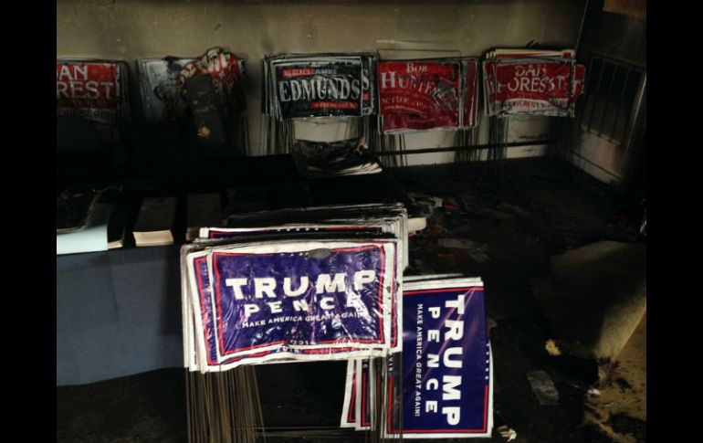 WASHINGTON, ESTADOS UNIDOS (16/OCT/2016).- Una oficina del partido republicano en Carolina del Norte (EU) fue atacada hoy con un cóctel molotov que incendió su interior, en un ataque del que el candidato presidencial Donald Trump acusó a "animales que representan a Hillary Clinton", pese a que la candidata demócrata también condenó el incidente.El lanzamiento de una botella con líquido inflamable a través de una ventana de la oficina republicana en el condado predominantemente demócrata de Orange (Carolina del Norte) quemó muebles, materiales y carteles de campaña, aunque no provocó heridos, según la Policía local.La fachada del edificio contiguo tenía una pintada con una esvástica y la frase "republicanos nazis, fuera de este pueblo o verán", informó el diario local "The Charlotte Observer".Trump culpó del suceso a "animales que representan a Hillary Clinton y a los demócratas en Carolina del Norte", en un mensaje en su cuenta oficial de Twitter, y dijo que "no olvidará" el ataque.El candidato republicano también aseguró que el ataque se produjo "porque estamos ganando", dada la ajustada contienda en Carolina del Norte, un estado que será clave en las elecciones de noviembre y donde de momento Clinton lidera las encuestas por un estrecho margen.La aspirante demócrata también condenó los hechos en un tuit, al asegurar que el ataque fue "horrible e inaceptable", y se mostró "muy agradecida de que todo el mundo esté a salvo".El gobernador de Carolina del Norte, el republicano Pat McCrory, aseveró por su parte que el "lanzamiento de una bomba incendiaria a la sede local del partido en el condado de Orange es claramente un ataque a nuestra democracia"."La violencia no tiene lugar en nuestra sociedad, y especialmente menos en nuestras elecciones. Usaré todos mis recursos como gobernador para asistir a las autoridades locales en esta investigación", dijo McCrory en un comunicado.Dallas Woodhouse, el director ejecutivo del partido republicano en Carolina del Norte, calificó el ataque de un "acto de terrorismo político"."No sucumbiremos a este acto y responderemos a él. Cuando la gente intenta reprimir la libertad de expresión y de asamblea, tienes que contraatacar con más expresión y defender agresivamente tus derechos", subrayó Woodhouse, según informa el "Charlotte Observer".Ésta no es la primera vez en la carrera hacia las elecciones del 8 de noviembre que se registran episodios violentos en EU. Ha habido varias peleas en mítines de Trump y en marzo se produjeron disturbios en torno a un acto de campaña de ese candidato, en los que hubo cinco detenidos y dos policías heridos.