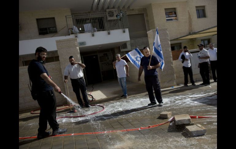 Un israelí realiza la limpieza del lugar donde, pocas horas antes, se produjo un apuñalamiento. AP / O. Bality