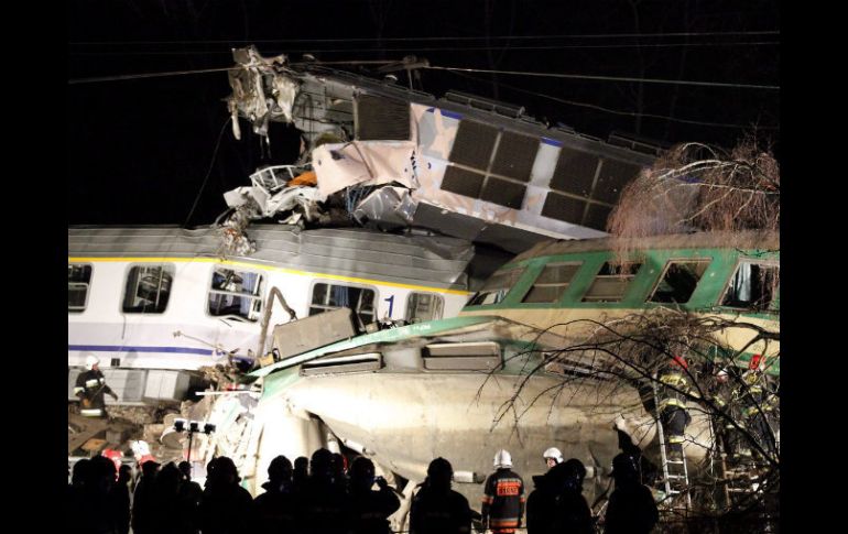 Internacional | El accidente, que fue de frente, dejó al menos a 60 personas lesionadas Van 14 muertos tras choque de trenes en Polonia El primer ministro polaco, Donald Tusk, ha viajado al lugar del accidente que se considera como uno de los más graves en Polonia en los últimos años Por: EFE 3 de marzo de 2012 - 18:15 hs El acccidente ocurrió en el trayecto entre Varsovia y Cracovia. EFE / BERLÍN, ALEMANIA (03/MAR/2012).- Una colisión entre dos trenes en el sur de Polonia dejó al menos 14 muertos y cerca de 60 personas heridas, informó la televisión pública polaca. El accidente ocurrió cerca de la ciudad de Zawiercie en el trayecto entre Varsovia y Cracovia. "Podemos confirmar que varias personas murieron y docenas resultaron heridas", dijo en declaraciones a la televisión el ministro de Interior, Jacek Cichocki. Por razones que todavía se desconocen, uno de los dos trenes transitaba por los rieles equivocados y chocó con el otro. El primer ministro polaco, Donald Tusk, ha viajado al lugar del accidente que se considera como uno de los más graves en Polonia en los últimos años. Según la policía, hay 30 heridos graves y algunos pasajeros están atrapados entre los escombros del accidente. En la operación de rescate participan 450 bomberos y 100 policías y hay helicópteros y ambulancias en acción. Con información de EFE y AFP Temas Europa Accidentes en el mundo Polonia Lee También ¿Cómo se despliegan los cárteles mexicanos en Australia? Reportan carambola en autopista a Morelia Muere conductor tras choque entre camioneta y camión en Arandas Conmociones cerebrales, la cuarta lesión más frecuente en partidos de la Conmebol Recibe las últimas noticias en tu e-mail Todo lo que necesitas saber para comenzar tu día Registrarse implica aceptar los Términos y Condiciones