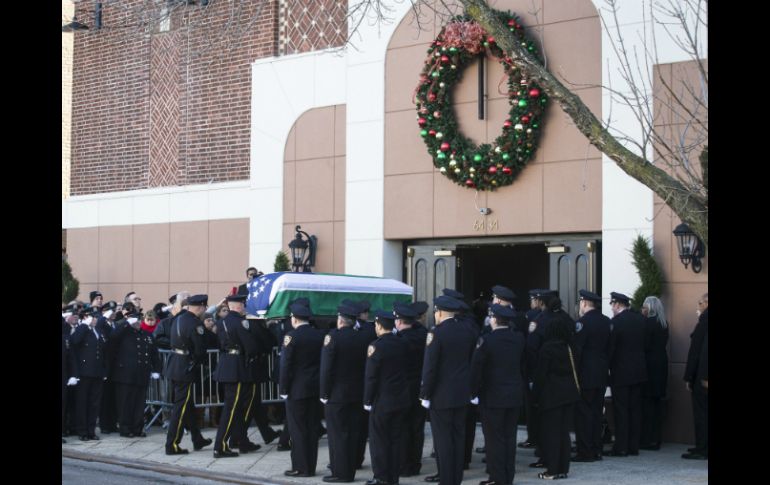 Internacional | Rafael Ramos, de origen puertoriqueño, será enterrado este sábado Velan en NY a policía hispano asesinado Rafael Ramos, de origen puertoriqueño, será enterrado este sábado Por: EFE 26 de diciembre de 2014 - 12:33 hs Se espera que en su entierro esté presente el vicepresidente estadounidense, Joe Biden. AP / J. Minchillo NUEVA YORK, ESTADOS UNIDOS (26/DIC/2014).- El cuerpo del policía de Nueva York Rafael Ramos, asesinado el sábado pasado, quedará instalado en una iglesia de esa ciudad para que sean velados sus restos antes de que sea enterrado el sábado. Ramos, de 40 años, de una familia de origen puertorriqueño, fue asesinado a sangre fría junto con su compañero Wenjian Liu, de 32, por un perturbado mental que se suicidó poco después de perpetrar el doble homicidio. El asesino, Ismaaiyl Brinsley, de 28 años, de raza negra, actuó supuestamente en venganza por la muerte de dos afroamericanos a manos de la Policía, uno en Nueva York en julio pasado, Eric Garner; y otro en Ferguson (Misuri), Michael Brown, en agosto. El cuerpo de Ramos será instalado en las próximas horas en una iglesia del distrito neoyorquino de Queens, donde se oficiará un servicio religioso a partir de las 19.00 hora local (00.00 GMT del sábado), antes de que sea sepultado el sábado. Se espera que en su entierro esté presente el vicepresidente estadounidense, Joe Biden, y asistan también miles de policías procedentes de diferentes lugares del país. Respecto a Liu, no se conocen muchos detalles sobre cómo será sepultado. Su familia, que ha expresado su deseo de hacerlo en privado, está esperando algunos parientes procedentes de China. Mientras tanto, continúan llegando compañeros y ciudadanos de Nueva York al altar provisional instalado en el sitio del distrito de Brooklyn donde fueron asesinados los dos agentes. Allí han llegado en fechas previas familiares de los dos policías y autoridades de Nueva York, como el alcalde de la ciudad, Bill de Blasio, y el gobernador del estado, Andrew Cuomo. El asesinato de los dos policías se produjo en medio de una ola de manifestaciones en Nueva York y en otros lugares del país por las muertes de Eric Garner y de Michael Brown, que han hecho reflotar tensiones raciales no vistas en muchos años. Temas Norte América Estados Unidos Nueva York Ferguson Lee También Una extraña “reunión privada” en Washington Estados Unidos anuncia nueva multa por cruzar ilegalmente sus fronteras Cartucho México y Estados Unidos refuerzan cooperación en seguridad fronteriza Recibe las últimas noticias en tu e-mail Todo lo que necesitas saber para comenzar tu día Registrarse implica aceptar los Términos y Condiciones