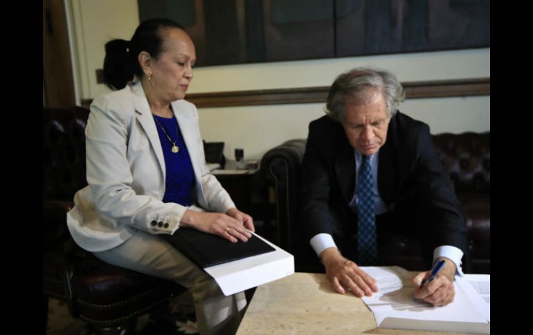 WASHINGTON, ESTADOS UNIDOS (28/ABR/2017).- Venezuela se convirtió el viernes en el primer país que gestiona su salida de la Organización de los Estados Americanos, cuando la embajadora interina, Carmen Velásquez, entregó la solicitud al secretario general, Luis Almagro.“Es un momento histórico que marca una nueva independencia para Venezuela y para la región”, dijo la funcionaria mientras mostraba a reporteros la carta con el sello de recibido. “Somos el primer país que hemos dejado atrás la Doctrina Monroe y hemos alzado las banderas de la independencia para consolidar la paz y la unión en la región”.Velásquez anunció que “nosotros ya no vamos a estar participando ninguna de las actividades de la OEA”, organización de la que Venezuela fue un país fundador en 1948.Las recientes protestas callejeras en la nación sudamericana han dejado este mes 32 muertos y 437 heridos.La embajadora relató que durante los minutos que estuvo en el despacho de Almagro le pidió que con sus próximos mensajes “se refiera al diálogo y a la paz. Venezuela es un país de paz y vamos a superar este momento”.El gobierno de Nicolás Maduro ha acusado reiteradamente a Almagro de abusar de su autoridad para solidarizarse con la oposición venezolana.Almagró confirmó en Twitter que recibió la solicitud de la misión de Venezuela para salirse de la OEA, al tiempo que afirmó que ello “no es la solución, lo es la redemocratización del país”.El artículo 143 de la Carta de la OEA estipula que cualquier Estado miembro podrá notificar por escrito al secretario general su intención de retirarse, y que transcurridos dos años dicho Estado quedará desligado después de haber cumplido con sus obligaciones.Caracas adeuda actualmente 10.5 millones de dólares al organismo, ya que desde hace varios años no paga su cuota anual de 1.8 millones.