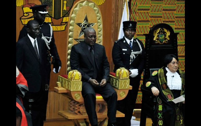 Internacional | La investidura de Mahama se produjo durante una ceremonia en el Parlamento Vicepresidente ghanés, investido presidente tras muerte de Atta Mills La investidura de John Dramani Mahama como nuevo presidente del país se produjo durante una breve ceremonia celebrada en el Parlamento a la que asistieron varios políticos Por: EFE 24 de julio de 2012 - 18:10 hs Mahama (c) se sitúa al frente de un país políticamente estable en una región turbulenta como es África occidental. REUTERS / ACCRA, GHANA (24/JUL/2012).- El vicepresidente de Ghana, John Dramani Mahama, fue investido presidente tras el fallecimiento hoy en Accra del máximo mandatario ghanés, John Atta Mills, a los 68 años. La investidura de Mahama como nuevo presidente del país se produjo durante una breve ceremonia celebrada en el Parlamento a la que asistieron los diputados, varios políticos y altos cargos de la Administración. Se trata del cuarto presidente ghanés consecutivo cuyo nombre es John, tras Atta Mills (2009-2011), Agyekum Kufuor (2001-2009), y Rawlings (1993-2001). Mahama nació el 29 de noviembre de 1958 y es un hombre de letras, experto en Comunicación. En un comunicado difundido hoy por la Presidencia de Ghana, el jefe de Personal de la Presidencia ghanesa, John Henry Martey Newman, anunció, "con un gran pesar en el corazón, la muerte repentina" del hasta ahora máximo mandatario del país. Atta Mills, que el pasado sábado cumplió 68 años, falleció "esta tarde en el 37 Hospital Militar (en la capital ghanesa) mientras recibía atención médica después de haber enfermado unas horas antes", según el documento oficial, que no precisó la causa del deceso. El pasado año, el fallecido presidente fue elegido como candidato del gobernante Congreso Democrático Nacional de cara a las elecciones presidenciales y legislativas que el país tiene previstas para el próximo 7 de diciembre. Perfil De carácter afable y cercano, Mahama procede de una familia de políticos, ya que su padre, Emmanuel Adama Mahama, fue el primer diputado en la circunscripción de Gonja oeste, en la región Norte de Ghana, donde nació el flamante mandatario el 29 de noviembre de 1958. Mahama se sitúa así al frente de un país políticamente estable en una región turbulenta como es África occidental, y con una economía en crecimiento, características que la convierten en una de las potencias de la zona. Casado con Lordina Mahama -con quien tiene siete hijos-, el nuevo presidente de Ghana cuenta con el medioambiente entre sus preocupaciones. Mahama estudió psicología en Ghana y en Rusia, y es también historiador y escritor, además de haber sido diputado durante doce años, entre 1997 y 2009. El nuevo líder ghanés desempeñó el cargo de vicepresidente bajo el mandato de Atta Mills, desde enero de 2009 hasta el momento de asumir la Presidencia. Asimismo, fue ministro de Comunicación entre 1998 y 2001. Temas África República de Ghana Lee También Detienen en Guadalajara a presunto extorsionador; operaba en Jalisco y Puebla Decomisan más de 400 mil litros de huachicol en cuatro Estados Elementos de seguridad detienen a traficante sueco en Cancún Preparan 14 laboratorios para evitar huachicol fiscal Recibe las últimas noticias en tu e-mail Todo lo que necesitas saber para comenzar tu día Registrarse implica aceptar los Términos y Condiciones