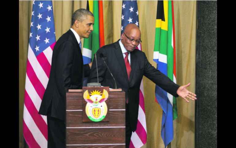 Internacional | El ex presidente sudafricano continúa ''crítico pero estable'' Vigilia por la salud de Mandela Personas de todo el mundo y delegados de organismos oficiales oran por la salud del héroe contra la segragación racial Por: EL INFORMADOR 29 de junio de 2013 - 23:23 hs El presidente estadounidense Barack Obama y su par sudafricano Jacob Zuma, tras la conferencia de prensa conjunta. AP / PRETORIA, SUDÁFRICA (30/JUN/2013).- Miles de personas en el mundo se han unido para pedir por la salud de Nelson Mandela con oraciones, vigilias, fotos, velas y hasta videos en YouTube. Incluso en la reunión del esquema de cooperación Petrocaribe, las delegaciones latinoamericanas que sesionaron en Managua también pidieron por la salud del líder. En tanto, el presidente de Estados Unidos, Barack Obama, quien visitó Sudáfrica, calificó a Mandela como una “fuente de inspiración para el mundo”, y mantuvo una reunión privada con familiares del líder de la lucha contra el apartheid. El mandatario estadounidense ofreció una conferencia de prensa junto al presidente sudafricano Jacob Zuma, quien afirmó que Mandela, de 94 años, sigue en estado “crítico pero estable”. También mencionó que espera que pueda volver a casa “muy pronto”. Obama detalló que no visitó el Medical Heart Hospital, donde está internado el líder social, “por respeto por el confort y la paz de Nelson Mandela, y por deseo de su familia”. Mandela está entre la vida y la muerte desde hace tres semanas a causa de una grave infección pulmonar. Temas África Barack Obama Nelson Mandela Sudáfrica Recibe las últimas noticias en tu e-mail Todo lo que necesitas saber para comenzar tu día Registrarse implica aceptar los Términos y Condiciones