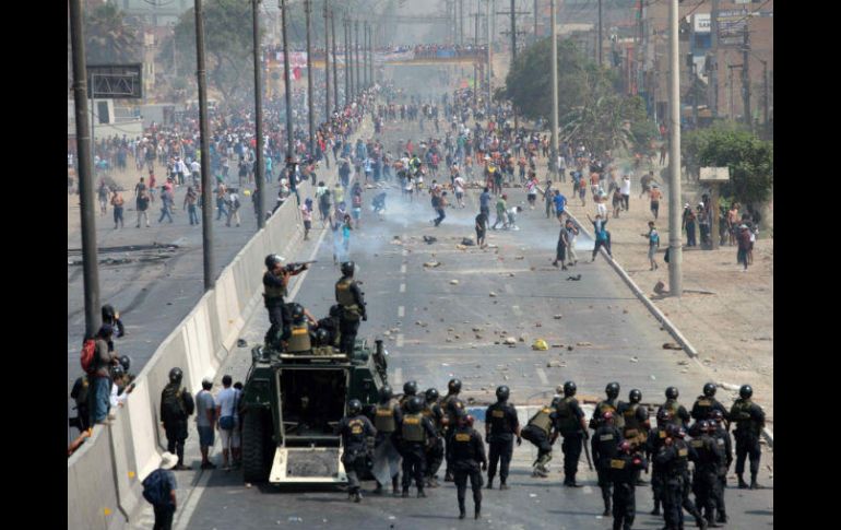 LIMA, PERÚ (12/ENE/2017).- Al menos un policía herido y más de 40 detenidos dejó el jueves una violenta protesta contra la instalación de un nuevo peaje en una carretera que atraviesa una populosa zona urbana al norte de Lima, informaron las autoridades peruanas.La protesta congregó a más de dos mil pobladores del distrito limeño de Puente Piedra, quienes habían iniciado una marcha por la autovía de manera pacífica hasta que un grupo radicalizado atacó con piedras y bombas incendiarias a policías antimotines que les impidieron llegar a las casetas de peaje.Los manifestantes exigen a la municipalidad de Lima que elimine el pago del peaje, que empezó a regir desde enero cuando la empresa Rutas de Lima inició el cobro de cinco soles (unos 1.50 dólares) para los vehículos como parte de la concesión que obtuvo de un tramo de la carretera Panamericana Norte."No al peaje, no es justo que nosotros, que vivimos acá, tengamos que pagar", dijo una mujer no identificada al canal N de televisión, expresando el sentir de una población que considera injusta la medida ya que están virtualmente obligados a pagar para ingresar a la zona urbana donde residen, adyacente a la carretera.El peaje provocó un malestar social generalizado, ya que además impulsó un alza de los pasajes de transporte público debido a que los transportistas trasladaron al precio del pasaje el costo del peaje, atizando la protestas."Hay un policía lesionado y 42 detenidos", dijo a periodistas el general Richard Zubiate, inspector general de la policía, quien no descartó que la cifra pudiese aumentar debido a que los agentes "han identificado a personas que en algún momento podrían ser capturadas".Los manifestantes ganaron las calles a pesar de que el miércoles el alcalde de de Lima, Luis Castañeda, anunció la suspensión del pago del peaje por 30 días.La importante vía que conecta a la capital de Perú con el norte del país quedó bloqueda por horas con piedras, bloques de muros de cemento y neumáticos ardiendo, que fueron colocados por los manifestantes.