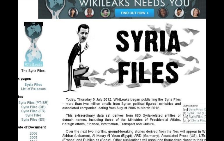 Internacional | Ponen en evidencia al represivo régimen de Damasco pero también a sus opositores Wikileaks publica más de dos millones de emails del gobierno sirio WikiLeaks empezó a publicar los archivos de Siria, más de dos millones de correos electrónicos de figuras políticas sirias, ministerios y compañías asociadas que datan de agosto de 2006 a marzo de 2012 Por: AFP 5 de julio de 2012 - 11:40 hs Las evidencias que pone Wikileaks esta ocasión, suman más de dos millones de emails. ESPECIAL / LONDRES, INGLATERRA (05/JUL/2012).- Wikileaks empezó a publicar este jueves más de dos millones de correos electrónicos internos del gobierno de Siria de 2006 a 2012, que según su fundador Julian Assange ponen en evidencia al represivo régimen en el poder en Damasco pero también a sus opositores. "WikiLeaks empezó a publicar los archivos de Siria, más de dos millones de correos electrónicos de figuras políticas sirias, ministerios y compañías asociadas que datan de agosto de 2006 a marzo de 2012", anunció una portavoz de WikiLeaks, Sarah Harrison, en una rueda de prensa matutina en Londres. La portavoz declinó comentar sobre el contenido global de los mensajes, que difunde nuevamente con un grupo de periódicos de diferentes países, y sugirió que debido a la amplitud de los archivos --"más de ocho veces el famoso Cablegate"-- el examen del conjunto podría tardar algún tiempo. Pero el fundador de WikiLeaks, Julian Assange, fue más explícito en un comunicado enviado desde la embajada de Ecuador, donde se encuentra refugiado desde hace más de dos semanas a la espera de una respuesta del gobierno de Quito sobre su solicitud de asilo. "El material es embarazoso para Siria pero también es embarazoso para los opositores externos de Siria", declaró el australiano de 41 años. "Nos ayuda a no simplemente criticar a un grupo o a otro, sino a entender sus intereses, acciones y pensamientos. Sólo a través de un entendimiento de este conflicto podemos pensar en resolverlo", agregó. El presidente sirio Bashar al Asad está confrontado desde marzo de 2011 a una revuelta popular cuya sangrienta represión causó ya 16 mil 500 muertos, según el Observatorio Sirio de los Derechos Humanos, una ONG con sede en Londres. Los dos millones 484 mil 899 emails, escritos en varios idiomas, entre ellos el árabe y el ruso, "arrojan luz sobre el funcionamiento interno del gobierno sirio y la economía, pero también revelan como Occidente y las empresas occidentales dicen una cosa y hacen otra", señaló WikiLeaks en un texto publicado en internet. Una de las primeras revelaciones afecta al grupo industrial italiano del sector de la defensa Finmeccanica, que según la web especializada, siguió asistiendo al régimen sirio con su sistema de comunicaciones ultrasofisticado incluso después del inicio de la represión. La información fue publicada este jueves por el semanario italiano L'Espresso en un artículo titulado "Finmeccanica ayudaba al dictador". El contrato de venta del sistema de telecomunicaciones TETRA de Selex Elsag, filial de Finmeccanica, grupo controlado por el Estado italiano, tiene fecha de 2008, pero Selex siguió enviando ingenieros a Damasco y asistiendo al régimen hasta un periodo reciente, afirman L'Espresso y el diario electrónico en español Público.es, dos de los medios de comunicación que se asociaron con WikiLeaks en esta filtración. La página creada por Assange se dio a conocer internacionalmente con la divulgación de cientos de miles de documentos secretos estadounidenses sobre las guerras de Irak y de Afganistán, a los que siguieron 250 mil cables confidenciales de la diplomacia norteamericana. El llamado "Cablegate", difundido con la ayuda de varios medios de prestigio mundial, enfurecieron a Washington. Desde entonces, Julian Assange, amenazado de extradición a Suecia como sospechoso de cuatro supuestos delitos de agresión sexual, se declara víctima de una persecución política y teme ser extraditado a Estados Unidos, donde según él podría ser acusado de espionaje y condenado a la pena de muerte. Ese es el argumento que alegó cuando el pasado 19 de junio pidió asilo político en la embajada de Ecuador, que el gobierno de Quito está "estudiando seriamente" para tomar una decisión "fundamentada", según dijo el miércoles a la prensa en Quito el canciller Ricardo Patiño.. Temas Medio Oriente Computación Siria WikiLeaks Lee También Microsoft lanza actualizaciones de IA para Windows 11 Hamás entrega cuatro cuerpos más de rehenes en Gaza Israel: Familiares de rehenes piden suspender el acuerdo si Hamás no devuelve a los muertos ¿Quiénes son los rehenes israelíes liberados con vida? Recibe las últimas noticias en tu e-mail Todo lo que necesitas saber para comenzar tu día Registrarse implica aceptar los Términos y Condiciones