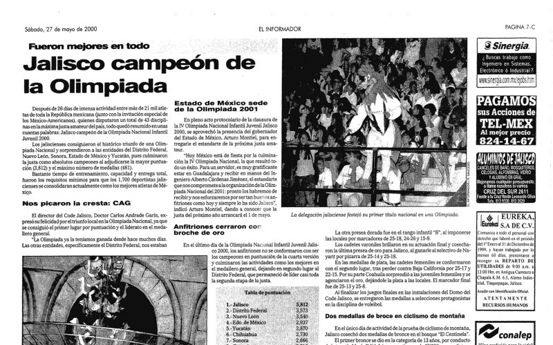 El éxito de Jalisco en la Olimpiada Nacional no es obra de la suerte ni tampoco algo que se haya conseguido de la noche a la mañana. Aunque la delegación auriazul siempre ha estado dentro de los primeros lugares desde que se creó esta justa deportiva para impulsar y fomentar el deporte mexicano en 1996, el poderío y dominio que han ejercido los deportistas jaliscienses ha sido respaldado por años de esfuerzo e inversiones gubernamentales y privadas.Jalisco se caracteriza por ser el Estado más competitivo del país y cuna de grandes atletas. Además, la entidad es el principal semillero para formar a las delegaciones mexicanas que participan en Juegos Olímpicos, Juegos Panamericanos o Campeonatos Mundiales de diferentes disciplinas.Sin embargo, la Selección jalisciense no siempre fue el rival a vencer. Cuando se creó la primera Olimpiada Nacional bajo el nombre de Olimpiada Juvenil hace casi 30 años, a Jalisco le tocó tratar de abatir el talento y destreza de los atletas del entonces llamado Distrito Federal, ya que a lo largo de las tres o cuatro primeras ediciones, los capitalinos fueron quienes figuraron como el ejemplo a seguir para el resto del país.La Olimpiada Nacional surgió con la esperanza de crear talentos deportivos y una auténtica escuela de jóvenes atletas para fortalecer el deporte en México. En 1996, Jalisco compitió con 800 atletas que ayudaron para que el Estado culminara en cuarto lugar tras obtener 115 medallas que estuvieron repartidas en 39 de oro, 36 de plata y 40 de bronce.Para 1998, nació la Olimpiada Infantil que se presentaba con el mismo propósito que la Olimpiada Juvenil, pero con la diferencia que estaba destinada a deportistas de menor edad para forjar el carácter competitivo prematuramente. Ahí, Jalisco mandó una delegación de 400 atletas con la singularidad de que se les repartió 100 pesos de viáticos a cada uno para cubrir parte de sus necesidades a lo largo de la justa, comenzando el incentivo y remuneración por su esfuerzo y compromiso.Finalmente, la selección auriazul terminó hasta el octavo lugar con 50 preseas (11 oros, 15 platas y 24 bronces). La primera Olimpiada Infantil contó con apenas 24 disciplinas en las que, en su mayoría, Jalisco no era considerado como potencia -como el frontón y la halterofilia- por lo que, a pesar de quedar fuera de los primeros lugares, una publicación de EL INFORMADOR del 3 de junio de 1998, aseguraba que para el Code fue importante reconocer el trabajo de los infantiles y saber cómo atacar nuevas experiencias.Con el comienzo de un nuevo milenio, a los atletas jaliscienses se les presentó otra oportunidad de seguir mejorando para alcanzar el tan ansiado primer lugar que se les había negado en anteriores ediciones. Entre 1997 y 1999, contabilizando tanto la Olimpiada Juvenil e Infantil, la delegación auriazul había quedado muy cerca de proclamarse como campeona; sin embargo, tuvo que conformarse con las segundas y terceras posiciones.Para Carlos Andrade, quien fungía como director del Consejo del Deporte de Jalisco en el 2000, el objetivo era claro: conseguir ese histórico e inédito campeonato en la Olimpiada Nacional. Sobre todo, porque el Estado fue sede de la segunda etapa de competencias y Andrade reconocía que Jalisco estaba mejor preparado tanto con los atletas como en las instalaciones deportivas.Con la firme visión de llevar a Jalisco a probar las mieles de la victoria, los deportistas dieron muestra de su tenacidad y compromiso para convertir al Estado en ganador y no defraudaron. Respondiendo a las expectativas, Jalisco ganó su primer título de la Olimpiada Nacional, luego de afianzarse en la cima del medallero con 161 oros, 132 platas y 188 bronces, que totalizaron 481 preseas. A partir de esa histórica edición ya no hubo quién pudiera destronar a Jalisco. En 2001 superaron su propio récord para lograr el bicampeonato, luego de ganar 541 medallas repartidas en 190 de oro, 160 de plata y 191 de bronce; mientras que, en 2002, cuando la Olimpiada Nacional se fusionó en una sola, Jalisco refrendó su poderío con el tricampeonato al obtener 512 medallas que se dividieron en 210 oros, 146 platas y 156 bronces.Desde que Jalisco tomó la corona en la Olimpiada Nacional en cada edición ha dejado una vara muy alta. Como en 2009, cuando rebasó por primera vez la barrera de los 300 oros, tras llegar a 332; o cuando en 2012, cruzó por primera vez el total de mil medallas con mil 006 para convertirse en un Estado imposible de alcanzar.Estos números se han alcanzando porque se han integrado más disciplinas al calendario de competencia y porque Jalisco ha estado renovándose constantemente en sus instalaciones deportivas, creando mejores y más estrategias en la captación de talento y trabajando más que el resto de las entidades.El dominio de Jalisco no sólo se ha limitado a las Olimpiadas Nacionales, ya que también se ha reflejado en los éxitos que México ha cosechado en Juegos Olímpicos.Uno de los deportes más fuertes para nuestra entidad son los saltos acuáticos, y como muestra de ello están Germán Sánchez, Iván García, Alejandra Orozco y Laura Sánchez, cuatro clavadistas que lograron subirse al podio en Londres 2012. Además de ellos, también se encuentran atletas como Paola Espinosa y Gabriela Agúndez, quienes, a pesar de no haber nacido en algún municipio de Jalisco, también fueron entrenadas bajo el manto del Code. En el caso de Agúndez, ella representa al Estado desde 2019, cuando llegó a ser entrenada por Iván Bautista, preparador en Jefe de la Escuela de Clavados del CODE Jalisco desde hace 20 años. Bautista ha sido el encargado de llevar a los clavadistas jaliscienses a los grandes escenarios y, ahora con la misión de seguir preparando a jóvenes promesas, atletas como Suri, Mía y Lía Cueva, Kenny Zamudio, Gabriel Vázquez e Ian Nava se preparan para seguir los pasos de sus predecesores.“Entre las principales diferencias de la gene