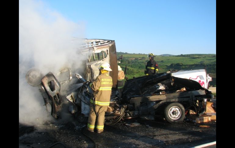 Jalisco | El difunto no ha sido identificado debido a quedó prensado y calcinado Accidente carretero deja saldo de un muerto y tres lesionados Fue encontrado un hombre sin vida en el interior de una camioneta de la marca Nissan Por: EL INFORMADOR 10 de septiembre de 2011 - 17:35 hs Personal del UEPCBJ realizó labores de sofocación del incendio. M. PATIÑO. / GUADALAJARA, JALISCO (10/SEP/2011).- Un muerto y tres lesionados es el saldo que arrojó un accidente automovilístico en el que chocaron dos vehículos de frente, sobre la autopista Guadalajara-Colima. El percance ocurrió a la altura del kilómetro 74 de la vía en mención, pero dentro de la demarcación del municipio de Ciudad Guzmán, donde al arribo de personal de Protección Civil del Estado, destacamentado en aquella demarcación, encontró a dos vehículos incendiados y colisionados de manera frontal: se trata de una camioneta tipo pick up, marca Ford-350, en color blanco, la cual se encontraba volcada sobre su lado izquierdo, misma que era conducida por Pedro Panó Cárdenas, de 48 años de edad, quien era acompañado por Israel Acebedo Mendoza, de 30 años, y que por la gravedad de sus lesiones, ambos fueron trasladados en estado regular hasta el hospital Regional de Ciudad Guzmán. El otro vehículo participante es otra camioneta tipo pick up, de la marca Nissan, con placas de circulación JR-56349, de esta Entidad, con caja frigorífica, que transportaba carnes frías, en la cual fue encontrado un hombre sin vida en su interior, mismo que quedó prensado y calcinado, por lo que no fue posible su identificación. Asimismo, en el percance se descubrió la participación de un tercer automotor: un Nissan Sentra, en color gris, de modelo 2004, con placas de circulación JCZ-7721, del Estado de Jalisco, el cual era conducido por Elías Noguera Luna, de 68 años de edad, quien fue trasladado en estado regular por personal de la Cruz Roja. El personal de la Unidad Estatal de Protección Civil y Bomberos de Jalisco (UEPCBJ) realizó labores de sofocación del incendio en los automotores afectados, asegurando la vía y el resguardo del cuerpo hasta ser entregado a personal de Instituto Jalisciense de Ciencias Forenses ( IJCF) para realizar los estudios periciales correspondientes. Temas Seguridad Accidentes con muertes en Jalisco Protección Civil Jalisco IJCF Recibe las últimas noticias en tu e-mail Todo lo que necesitas saber para comenzar tu día Registrarse implica aceptar los Términos y Condiciones