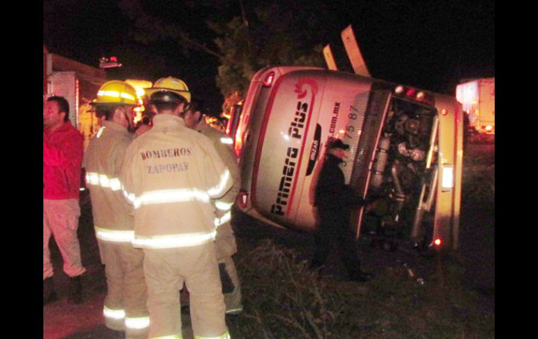 Jalisco | Un camión con destino a Puerto Vallarta se volcó en la carretera Accidente carretero deja un fallecido y 10 heridos Un camión con destino a Puerto Vallarta se volcó en la carretera Por: EL INFORMADOR 27 de octubre de 2011 - 17:12 hs Al lugar del accidente acudieron diferentes autoridades, entre ellas elementos de la Unidad de Protección Civil y Bomberos Jalisco. / ZAPOPAN, JALISCO (27/OCT/2011).- Más de una decena de personas que se dirigían a Puerto de Vallarta, terminaron su viaje en la cama de un hospital, debido a que en el camión en el que viajaban se volcó. El accidente ocurrió alrededor de las 4:00 horas de este jueves en la carretera que conduce de Guadalajara a Puerto Vallarta, a la altura del kilómetro 22, en las inmediaciones del poblado de la Venta del Astillero, en la ex Villa Maicera. Los pasajeros procedían del Estado de México y tenían como destino el puerto turístico mencionado. De acuerdo con las primeras investigaciones por parte de autoridades municipales, se presume que el conductor de la unidad 6105 de la línea de camiones denominada Primera Plus se volcó al tomar una curva y cayó en una cuneta que tiene la función de dividir los carriles; se presume que se quedó dormido. Además, el automotor de grandes dimensiones se estrelló con varios árboles. Por la magnitud del accidente, acudieron paramédicos de la Cruz Roja, de la Cruz Verde Zapopan, así como bomberos zapopanos, elementos de la Unidad de Protección Civil y Bomberos Jalisco, y agentes de la Policía Federal quienes atendieron a los heridos. Sin embargo, en el lugar murió un hombre identificado de manera extraoficial como Ramón López Lazo Fahra, de 71 años; los heridos fueron llevados a diferentes puestos de socorro y hospitales para su atención médica. Por su parte, un agente del Ministerio Público acudió al lugar de los hechos para iniciar las investigaciones del caso, además el cuerpo del hombre fue llevado a la morgue de la Zona Metropolitana en espera de que sea reclamado. EL INFORMADOR / OMAR RUVALCABA Temas Seguridad Accidentes con muertes en Jalisco Carreteras de Jalisco Puerto Vallarta Recibe las últimas noticias en tu e-mail Todo lo que necesitas saber para comenzar tu día Registrarse implica aceptar los Términos y Condiciones