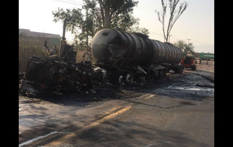 GUADALAJARA, JALISCO (26/MAY/2017).- Un fuerte accidente entre dos tráiler y una pipa cargada con combustible se registró esta mañana sobre la autopista Guadalajara-Colima.Los hechos ocurrieron en el kilómetro 106+200 de la autopista, a la altura de Cuatro Caminos, frente al rastro de Tuxpan, según informó la Unidad Estatal de Protección Civil y Bomberos de Jalisco (UEPCBJ).En el percance se vieron involucrados tres vehículos pesados que impactaron entre sí:-Un tráiler blanco de la empresa Auto Express ELA, del cual su conductor fue trasladado por personal de la Cruz Roja al hospital regional de Ciudad Guzmán.-Un tráiler que transportaba 50 toneladas de piso, del cual el conductor y su acompañante resultaron con lesiones leves, sin embargo, se negaron a ser trasladados para su ateaccidentesnción médica, refirió la UEPCBJ.-Una pipa que transportaba 30 mil litros de diesel en dos remolques. La cabina de este vehículo presentó se encontraba en llamas sin embargo no se reportaron lesionados pues el chofer no fue hallado en el sitio.La Unidad de Protección Civil y Bomberos de Tuxpan trabajó en coordinación de la Policía Federal, la Cruz Roja de Ciudad Guzmán y personal de mantenimiento de la autopista, para poder sofocar el fuego del vehículo incendiado, atender a los lesionados y llevar a cabo el saneamiento y liberación de la autopista, informó la UEPCBJ.