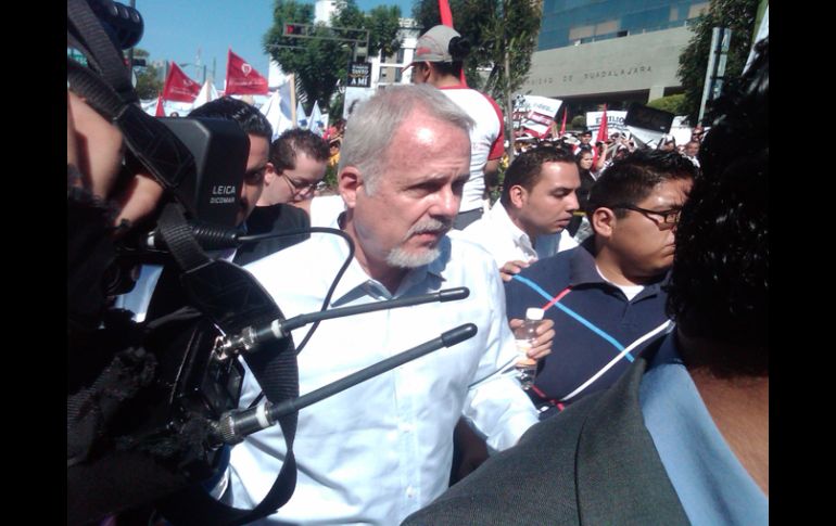 Jalisco | Señaló que 'tenía que asistir a esta marcha' Acompaña Raúl Padilla megamarcha Sorpresivamente el ex rector de la UdeG encabeza la movilización que partió minutos después de las 11:00 horas desde la Rectoría hacia el Centro Por: EL INFORMADOR 29 de septiembre de 2010 - 10:30 hs En la imagen, Raúl Padilla López a las afueras de Rectoría, para unirse a la megamarcha. R. ZAPATA / Megamarcha se desarrolla en las callesde Guadalajara (COBERTURA ESPECIAL)Sufren líderes universitarios parallegar al templete en Plaza LiberaciónGUADALAJARA, JALISCO (29/SEP/2010).- Minutos antes de que iniciara la marcha que partió de la Rectoría y luego de que el rector general de la Universidad de Guadalajara, Marco Antonio Cortés Guardado distrajera la atención de los medios de comunicación al salir por delante, detrás de él venía el ex rector de la casa de estudios, Raúl Padilla, quien sorpresivamente se incorporó a la cabeza del contingente integrado por alrededor de 10 mil personas. Durante el trayecto de las puertas de la Rectoría hacia la avanzada del contingente, el presidente de la Feria Internacional del Libro (FIL) dijo a EL INFORMADOR que “tenía que asistir a esta marcha”. Debido a la expectativa que generó su presencia en la movilización, algunos de los representantes de los medios de comunicación tuvieron varios altercados con el equipo de seguridad que acompañaba al grupo del ex rector. En la primera hilera del contingente, el presidente de la FIL era acompañado por su hermano Trinidad Padilla López, el rector general de la UdeG Marco Antonio Cortés Guardado, el escritor Fernando del Paso, los diputados Enrique Aubry, Rocío Corona Nakamura y Jesús Casillas Romero, los alcaldes de Tlaquepaque y Tonalá, Miguel Castro Reynoso y Antonio Mateos Nuño, respectivamente, entre otros. En al menos diez ocasiones, el contingente que marchó en contrasentido por la Avenida Juárez rumbo a la Plaza de la Liberación detuvo su marcha, en algunas ocasiones para compactarse, pero en la mayoría de las veces para poner ‘orden’ al frente del grupo. Finalmente el contingente llegó sin incidentes de consideración al primer cuadro de la ciudad donde ya los esperaba el resto de la comunidad universitaria. Durante el desfile de discursos que dirigentes de la UdeG pronunciaron en el punto de la concentración, Padilla López no tuvo participación alguna. EL INFORMADOR / RAFAEL ZAPATA Temas Manifestaciones en Jalisco Gobierno del Estado Raúl Padilla Presupuesto UdeG Lee También Abogado de presunta víctima espera vinculación a proceso de Omar "N" México reacciona a acuerdo de paz entre Israel y Hamás Así luce Cihuatlán ante el paso de la tormenta tropical "Raymond" (VIDEO) Abogado de Omar "N" asegura que el exfubolista "podría salir caminando" Recibe las últimas noticias en tu e-mail Todo lo que necesitas saber para comenzar tu día Registrarse implica aceptar los Términos y Condiciones