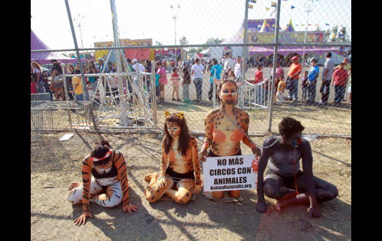 Jalisco | Exigen que se les brinde protección Activistas denuncian maltrato de animales en circos El movimiento Anima Naturalis repartió información sobre el trato que reciben los animales antes de salir a escena Por: EL INFORMADOR 7 de mayo de 2011 - 19:52 hs Los manifestantes se pintaron de algunas especies y emularon el cautiverio que sufren algunos animales en los circos. A. GARCÍA / GUADALAJARA, JALISCO (07/MAY/2011).- Pintados como algunas especies y emulando el cautiverio que sufren los animales utilizados como atracción en los circos, más de 100 activistas arribaron esta tarde a la carpa instalada afuera de Los Belenes para manifestarse contra los espectáculos donde utilizan animales. Anima Naturalis es el movimiento organizador que con jaulas, cadenas, pancartas y folletos trató de disuadir a las personas que hacían fila para comprar boletos e ingresar a la función vespertina, igualmente hicieron con los automóviles que llevaban al estacionamiento, repartieron información sobre el trato que reciben los animales antes de salir a escena. “Estos circos violan el artículo 17 del Estado de Jalisco, ya que establece que si un animal entra al Estado está protegido por la ley y que nos se puede causar sufrimiento injustificado. Ya lo hemos demandado a las autoridades correspondientes pero no han hecho nada” dijo Anayeli Gálvez, vocera de la organización internacional en Guadalajara, quien espera que en México la ley prohíba que se utilicen animales para ofrecer espectáculos. Según la organización son más de 100 animales desde osos hasta elefantes los que maneja particularmente este circo ubicado enfrente del Auditorio Telmex, mismos que son albergados en jaulas de dos por tres metros y que permanecen largas jornadas bajo los rayos del sol. EL INFORMADOR / VIOLETA MELÉNDEZ Temas Manifestaciones en Jalisco Municipios Maltrato a animales Lee También Detienen a dos personas en la colonia La Estancia de Zapopan Calidad del Aire AMG: ¿Cómo amanece la ciudad HOY viernes 17 de octubre de 2025? Guadalajara nublada el viernes con ligera posibilidad de lluvia Sin maíz no hay país Recibe las últimas noticias en tu e-mail Todo lo que necesitas saber para comenzar tu día Registrarse implica aceptar los Términos y Condiciones