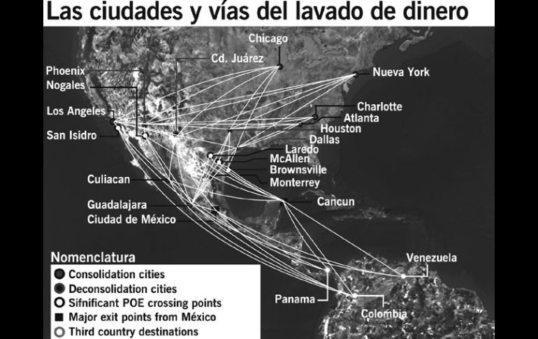 Jalisco | Reporte binacional Aeropuerto, ruta de entrada de dinero ilícito Guadalajara es considerada uno de los tres puntos más importantes para el “lavado” de dinero en el país Por: EL INFORMADOR 7 de junio de 2010 - 06:30 hs Fuente: Estudio Binacional de Bienes Ilícitos. EL INFORMADOR J. LÓPEZ / GUADALAJARA, JALISCO (07/JUN/2010).- El Estudio Binacional México-Estados Unidos de Bienes Ilícitos presentado el pasado 2 de junio en la Ciudad de México, ubica a Guadalajara como una de las tres ciudades del país “consolidadas” en materia de “lavado” de dinero. Además, se considera al Aeropuerto Internacional Miguel Hidalgo (AIMH) como uno de los principales puntos de ingreso de dinero ilícito. El estudio fue dado a conocer por John Morton, secretario adjunto de Inmigración y Aduanas del vecino país del Norte. En su elaboración colaboraron dependencias de ambos países, entre las que destacan el Departamento de Seguridad Interior (DSI) de los Estados Unidos (EU) así como la Secretaría de Hacienda y Crédito Público (SHCP) y la Procuraduría General de la República (PGR) de nuestro país. En los términos del reporte, Guadalajara es, junto con Culiacán y Monterrey, una ciudad “consolidada” en materia de “lavado” de dinero. El concepto no está descrito en el documento, pero sí se señala que la consolidación es el mayor nivel que se puede alcanzar según la metodología del estudio. Además, el aeropuerto de la ciudad es, junto con el de la Ciudad de México y el de Cancún, uno de los tres más utilizados para el paso de divisas “blanqueadas” dentro del territorio nacional. El documento informa que cada año ingresan a México entre 19 mil y 29 mil millones de dólares provenientes de actividades ilícitas llevadas a cabo en Estados Unidos. La mayor parte del monto entra como dinero en efectivo, mucho del cual pasa por la frontera vía terrestre, pero otro tanto ingresa por medio de transferencias electrónicas o a través de algún otro recurso digital. Según el informe, el dinero que pasa por Guadalajara por vía aérea va al sur de EU o a ciertos países sudamericanos, como Panamá o Venezuela, para aminorar la probabilidad de que sea detectado por las autoridades. “Las empresas criminales que operan la serie de procesos que se necesitan para contrabandear bienes ilícitos de los Estados Unidos a México y hacia países del denominado Tercer Mundo, tienden a dividirse conocimiento y responsabilidades con objeto de limitar el impacto de la aplicación de la ley”, sostiene textualmente el estudio. GUÍALo esencial ¿Qué es el “lavado” de dinero? Es el regreso a la circulación en el circuito financiero (sistema financiero) de dinero que proviene de actividades ilícitas. Generalmente se hace con transacciones financieras escalonadas, que mezclan dinero lícito con ilícito, y que impiden seguir la pista para conocer su origen. ¿El dinero ilícito que se intenta “lavar” proviene del narcotráfico? Sí, pero no exclusivamente. También proviene de robos, extorsiones y secuestros. ¿Cómo afecta el “lavado” de dinero a la economía? De tres formas: 1) Genera inflación en sectores específicos, como el de la vivienda. 2) Eleva los costos de transacción. Operaciones bancarias que deben tomar un minuto, con los controles gubernamentales, se vuelven de varios días. Eso afecta a muchos sectores económicos que necesitan velocidad en su flujo. 3) Genera distorsiones productivas. Los sectores tradicionales sufren desinversión. ¿Cuánto dinero se “lava”? No es posible determinar con exactitud cuánto dinero del que circula en el sistema bancario proviene de fuentes ilícitas, pero se estima que en todos los países no es menor a 5% del PIB. El “lavado” genera distorsiones El economista Ignacio Román pone sobre la mesa algunos puntos a debatir sobre el impacto del “lavado” de dinero en una economía. Por un lado, explica que la entrada drástica de recursos adicionales externos puede distorsionar la estructura económica, pero no necesariamente genera inflación, como algunos sostienen. “Si tienes una estructura económica y de repente te aparece de la noche a la mañana una actividad que te genera una enorme tasa de rentabilidad en un periodo muy breve, lo que generas es un desplazamiento de capitales de sectores productivos tradicionales”, explica el investigador. Eso, añade, puede suceder con actividades criminales o con otras actividades que irrumpan en el escenario, como sucedió con el auge petrolero. En todos los casos, se deteriora la estructura productiva de una ciudad. Además, el dinero del narcotráfico es volátil, por su naturaleza. Invertir o lavar dinero en una plaza depende de las probabilidades de ser detenido. Si son bajas, se queda el dinero, si son altas, se va. Sin embargo, en lo que se refiere a la inflación, el economista explica que ese no es un efecto del “lavado” de dinero en una ciudad. La teoría ortodoxa explica que la inflación se deriva de un exceso de circulante. Si entra mucho dinero, hay más recursos pero no más producción, lo que encarece a esta última y el resultado es la inflación. “Pero en este caso lo pondría en duda”, advierte el doctor en Economía, “porque la de Guadalajara no es una economía cerrada”. Eso significa, añade, que sus habitantes no consumen sólo lo que aquí se produce y sus productores no venden sus productos sólo aquí, lo que los obliga a competir en otros mercados en donde no está la distorsión y eso inhibe el efecto inflacional. En el caso de la vivienda también duda Román y señala que la expansión de fraccionamientos populares y su dinamismo sí está relacionado con dinero externo, pero proveniente de las remesas. Al señalarle que las remesas son parte del “lavado” de dinero, el académico reconoció un comportamiento atípico, pero también pidió cautela a la hora de sacar conclusiones. “El crecimiento de remesas de