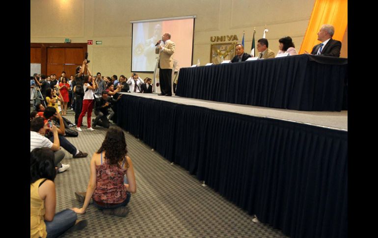 Jalisco | La Univa organiza el evento para confrontar proyectos Ahora sí armaron el debate, aunque sin Aristóteles La Univa organizó el evento para confrontar proyectos y que la comunidad estudiantil se entere de lo que se ofrece para los próximos seis años en Jalisco Por: EL INFORMADOR 9 de mayo de 2012 - 03:13 hs Enrique Alfaro fue el primero en tomar la palabra, y de entrada lamento que ''se huya al debate''. / GUADALAJARA, JALISCO (09/MAY/2012).- Lo que no ocurrió en el debate oficial del 1 de mayo organizado por el Instituto Electoral estatal, acabó por suceder ayer en la Universidad del Valle de Atemajac (Univa), donde cuatro de los cinco candidatos a la gubernatura protagonizaron un acalorado debate ante poco más de mil 500 estudiantes. El gran ausente fue el priista Aristóteles Sandoval Díaz, quien a la misma hora acudía en solitario a otro encuentro con estudiantes. Su equipo de campaña ya ha informado que no asistirá a debates que no sean organizados por la autoridad electoral. Ante los estudiantes de la Univa, después de una encendida discusión entre el panista Fernando Guzmán y el candidato de Movimiento Ciudadano, Enrique Alfaro, éste cosechó la mayor aprobación. La Univa organizó el evento para confrontar proyectos y que la comunidad estudiantil se entere de lo que se ofrece para los próximos seis años en Jalisco. Desde el arranque, los universitarios coreaban el apellido de Alfaro, quien entró al salón acompañado por su contrincante Fernando Guzmán, con quien sostuvo diferencias que fueron discutidas con libertad, en rondas de dos minutos para cada uno. Cuando se desarrollaba la presentación de los aspirantes a encabezar el Gobierno estatal, el moderador usó un espacio para “disculpar” la ausencia de Sandoval Díaz, por “motivos de agenda”. Esto desató rechiflas y abucheos para el tricolor. Enrique Alfaro fue el primero en tomar la palabra, y de entrada lamento que “se huya al debate”. Temas Univa Debates políticos Elecciones Jalisco 2012 Recibe las últimas noticias en tu e-mail Todo lo que necesitas saber para comenzar tu día Registrarse implica aceptar los Términos y Condiciones