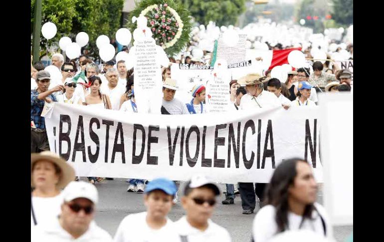 Jalisco | El contingente avanzó en silencio de la Plaza Juárez a la de Armas Al menos dos mil marchan en Guadalajara por la paz Cientos de personas avanzaron de la Plaza Juárez a la de Armas en silencio para exigir un alto al derramamiento de sangre y en recuerdo de las víctimas mortales Por: EL INFORMADOR 8 de mayo de 2011 - 14:30 hs Aspecto de la marcha por la paz en Jalisco. E. PACHECO / GUADALAJARA, JALISCO (08/MAY/2011).- Por lo menos dos mil personas en Jalisco se sumaron a la Marcha por la Paz. Pidieron un alto al derramamiento de sangre, a las víctimas colaterales de la lucha contra la delincuencia organizada. Lanzaron un ya basta a la violencia; una exigencia de paz… al derecho a vivir sin miedo en el país. De Plaza Juárez partió el amplio contingente conformado por personas de distintas edades, niños, jóvenes, adultos, personas de la tercera edad; algunos integrantes de las organizaciones ciudadanas y universidades convocantes a la marcha en Guadalajara; muchos otros asistentes espontáneos atraídos a la movilización para sumar sus voces a otras muchas, con la esperanza de que suenen más fuerte y alcancen a ser escuchadas por autoridades federales. Fue una marcha sin colores. Los coches en Avenida 16 de Septiembre, a partir de Plaza Juárez, en los carriles con dirección Sur-Norte, fueron desplazados por el blanco contingente que avanzó en silencio hasta Plaza de Armas. Los globos, los clones con el nombre, edad y situación en la que perdieron la vida personas que se encontraban en el lugar y momento equivocado, se trata de las víctimas del “daño colateral” de la lucha contra el narcotráfico, se observaban por doquier. Ya en Plaza de Armas distintas intervenciones con una petición común, la paz, un “ya basta” a los alrededor de 40 mil ejecutados en lo que va de la Administración federal. Un fuerte aplauso en muestra de respaldo, arrancó a los asistentes el planteamiento de que el Ejército salga de las calles y regrese los cuarteles. A Erica Loyo, integrante de Por un México sin Violencia. Basta, y Marco Núñez dirigente de la Federación de Estudiantes Universitarios, les correspondió dar lectura a las seis propuestas que las organizaciones ciudadanas hacen a las autoridades, tales como la creación de un registro nacional de víctimas y desaparecidos, la recuperación de la convivencia social rescatando el espacio público (creando infraestructura de ciclovías, parques lineales, entre otros). Como parte de la Reforma Política la exigencia, dijeron, es incluir la figura de consulta popular y que uno de sus primeros usos corresponda a la aplicación de una consulta sobre la estrategia de seguridad nacional implementada por el Gobierno federal. Asimismo, pidieron que los medios de comunicación no operen como ministerios públicos, que partan del principio de presunción de inocencia, para evitar la criminalización de las personas que son presentadas como delincuentes. También proponen crear en los programas de estudio a nivel básico y medio, un programa de educación cívica para la paz, de respeto a los derechos humanos y gestión pacífica de las diferencias. Celebran que se haya pospuesto la llamada Ley de seguridad Nacional, en este tema la demanda es que se incluya la seguridad de las personas, no sólo del Estado. “No toleraremos la aprobación de un estado de excepción que dé pie al uso de fuerzas armadas permanentes”, subrayaron. Además, Erica Loyo dijo que se plantea agregar un punto: “Esta marcha por la paz para que pueda ser completa, deberá someter a discusión e incluir a la lucha contra la violencia hacia las mujeres”. Por su parte, Rossana Reguillo hizo desde el quiosco de Plaza de Armas el pase de lista de los 11 menores de edad que en Jalisco han perdido la vida en hechos violentos, en fuegos cruzados; en tributo a ellos se colocó en la Rotonda de los Jaliscienses Ilustres una placa con sus nombres. En la movilización también alzaron la voz madres que claman por encontrar a un hijo desparecido, a un hermano. La señora Guadalupe Aguilar fue una de ellas, desde el pasado 17 de enero no tiene información del paradero de su hijo José Luis Arana de 34 años de edad; por parte de las autoridades no hay avances en las investigaciones para localizarlo. EL INFORMADOR / LETICIA FONSECA Temas Manifestaciones en Jalisco Municipios Ejecutados en Jalisco Lee También Astros de Jalisco doblega a Xalapa y se pone a un juego de la Final de Zona Escuela Gómez de Mendiola celebra sus primeros 75 años al servicio de los tapatíos Proyectan expansión de Placencia Muebles Omar 'N' es vinculado a proceso por presunto abuso sexual infantil agravado Recibe las últimas noticias en tu e-mail Todo lo que necesitas saber para comenzar tu día Registrarse implica aceptar los Términos y Condiciones