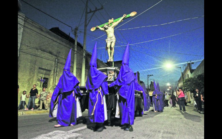 GUADALAJARA, JALISCO (15/ABR/2017).- Los cofrades se colocan la capucha y toman su posición en las andas. Algunos de ellos las cargan sobre sus hombros y otros empujan un carro, pero todos recorrerán las calles del Barrio de Analco en la primera Gran Procesión del Silencio y la Vía Dolorosa que recuerda a la Pasión de Cristo.En esta ocasión el Señor de las Maravillas, el Santo Entierro, la Virgen de la Soledad, el Divino Preso y el Calvario (Señor de Analco) dejan sus templos para caminar del Templo de San José hasta San Sebastián.“Es una síntesis de la Pasión de Cristo, desde su aprehensión hasta su sepultura”, explica José Dolores Aguayo González, el padre “Lolo”, vicario parroquial de San José.“A través del arte sacro queremos mover la devoción de los fieles, suscitar el amor y la fe”.Acólitos y damas de luto preceden a las andas. Un flautista les marca el ritmo mientras uno de los organizadores pide que caminen lento para que no se separen del grupo.Algunas figuras repiten recorrido, como el Señor de las Maravillas y el Señor de Analco. Igual sucede con los garrocheros, quienes van levantando los cables de la luz para que logren pasar.El padre “Lolo” explica que el atuendo de los cofrades tiene su origen en la Edad Media. Usualmente era utilizado en los funerales ostentosos de los nobles, emperadores y señores feudales.Los colores varían para distinguir a las diferentes imágenes que portan y van haciendo penitencia. Son 120; casi la mitad de los 300 participantes de la procesión.Cientos de tapatíos acompañan a las figuras durante su recorrido. Muchos de ellos portan velas, aunque la luz más intensa es la que sale de los celulares desde los que se graba la procesión.Este domingo concluyen las actividades de la Primera Gran Procesión del Silencio y la Vía Dolorosa, con la meta de consolidarse como una de las tradiciones más importantes de la Perla Tapatía.