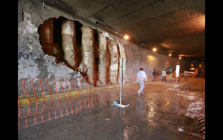 GUADALAJARA, JALISCO (07/AGO/2017).- El Ayuntamiento de Guadalajara ya analiza posibles sanciones a la constructora que realiza trabajos en la superficie del túnel vehicular de Colón y Washington que fue cerrado el sábado por un desprendimiento de enjarre. Gabriel Real, director de Mantenimiento Urbano, indicó que la reparación costará entre cinco mil y siete mil pesos que podrían cobrar a la empresa que realiza obra pública sobre Avenida Washington. "La reparación va a correr por parte de Mantenimiento Urbano, nosotros la iremos reparando por la noche para no causar ningún problema. A ellos (la empresa) se les puede sancionar e inclusive multar para cobrar lo que amerite la reparación de los muros. Nosotros vamos a comenzar la reparación porque el ciudadano es el que menos debe sufrir las consecuencias", explicó al omitir el nombre de la empresa. "Voy a checar eso con Obras Públicas para que les pase la factura, les hagan su multa correspondiente y su jalón de orejas ya que fue una situación provocada por ellos". El funcionario municipal precisó que esta misma semana comenzarán los trabajos de reparación en el punto que concluirán a más tardar en una semana pues se tratan de "arreglar la apariencia". "Cerraríamos de las 10:30 de la noche en adelante porque es el horario que la Secretaría de Movilidad nos permite para cerrar y causar las menos molestias posibles a los automovilistas". El desprendimiento de enjarre ocurrió la madrugada de este sábado, poco antes de las seis de la mañana y se procedió al cierre parcial de la circulación de sur a norte. El área aproximada del daño fue de unos dos metros de largo por dos de ancho. Gabriel Real explicó que el principal problema que enfrentan los pasos a desnivel son la acumulación de basura que a su vez provoca inundaciones. Hizo un llamado a la ciudadanía a no tirar sus desechos en las calles.EL INFORMADOR / VIRGINIA ARENAS
