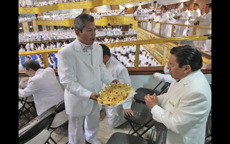 Jalisco | La ceremonia de despedida se llevará a cabo el domingo a las 10:00 de la mañana Anima Samuel Joaquín Flores a los fieles en la Santa Cena Los responsables de la organización aseguran que hay 300 mil personas distribuidas en diferentes lugares de esta sede Por: EL INFORMADOR 14 de agosto de 2010 - 19:20 hs Durante la celebración de la Santa cena en la Hermosa Provincia. S. NÚÑEZ / GUADALAJARA, JALISCO (14/AGO/2010).- El director internacional de la iglesia de la Luz del Mundo, Samuel Joaquín Flores, encabeza en estos momentos la ceremonia de la Santa Cena 2010, en la que motiva a miles de seguidores antes de iniciar su personal bendición del pan y el vino que se distribuirá entre 300 mil personas distribuidas en diferentes lugares. De acuerdo con los responsables de la organización de ésta, la máxima ceremonia de la Semana de la Santa Convocación de la Luz del Mundo, en el templo central hay 13 mil personas escuchando a Samuel Joaquín Flores, a la espera de recibir el pan y el vino de la cena. Alrededor del templo, distribuidos en 18 calles aledañas de la colonia El Bethel, participan en el ritual 70 mil fieles más. En el Fraccionamiento Maestro Aarón Joaquín se encuentran 20 mil personas participando a través de una transmisión en vivo, y 30 mil jóvenes toman parte de la Cena desde la llamada Villa de Jezrel. La Santa Cena concluirá a las 22:30 horas, según los organizadores. El domingo a las 10:00 de la mañana tendrá lugar el último acto de la semana: la ceremonia de despedida, que dirigirá también Samuel Joaquín Flores. Después de ésta, los miles de visitantes dejarán la ciudad para concluir con la tradicional semana que convoca a todos los integrantes de esta iglesia desde 1944. EL INFORMADOR / JORGE NAVARRO Temas Religión Municipios La Luz del Mundo Lee También Bajan lluvias el sábado en Guadalajara, pero se mantiene nublado Con "Raymond" cerca, Guadalajara espera lluvias a esta hora del viernes "Raymond" AMAGA a Jalisco; lo que necesitas saber ¿Cómo llegar en camión o tren a la Romería 2025? Recibe las últimas noticias en tu e-mail Todo lo que necesitas saber para comenzar tu día Registrarse implica aceptar los Términos y Condiciones