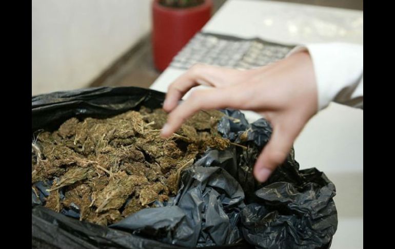 Jalisco | Le decomisaron dos kilos 800 gramos de mariguana Aprehenden a presunto narcomenudista en Guadalajara Le decomisaron dos kilos 800 gramos de mariguana Por: NTX 30 de abril de 2011 - 16:53 hs Además de 169 envoltorios, al sujeto se le decomisó una bolsa con mariguana. ESPECIAL / GUADALAJARA, JALISCO (30/ABR/2011).- Elementos de la Dirección General de Seguridad Pública del Estado ( DGSPE) aprehendieron a un presunto narcomenudista que operaba en calles de la colonia Las Huertas, en esta ciudad. La Secretaría de Seguridad Pública de Jalisco agregó que se trata de quien dijo llamarse Sergio Guadalupe Gabriel Alvarez, de 25 años de edad. Indicó que elementos estatales realizaron su recorrido de vigilancia en el cruce de las calles Francisco de Aiza y Rivas Guillén, en la colonia Las Huertas. Añadió que en ese lugar los uniformados observaron a un hombre que cargaba un bulto, quien al ver la unidad policial aceleró el paso, por lo que de inmediato fue detenido para una revisión policial. Señaló que a Sergio Guadalupe Gabriel Alvarez le fue decomisado dentro de una valija en color azul, 169 envoltorios con mariguana, así como una bolsa de plástico con el mismo vegetal en greña, dando un total aproximado de dos kilos 800 gramos. Resaltó que el ahora detenido, junto con la droga, fue puesto a disposición de un agente del Ministerio Público para su investigación. Temas Seguridad Decomisos de droga en Jalisco Detenidos en Jalisco Narcomenudeo Recibe las últimas noticias en tu e-mail Todo lo que necesitas saber para comenzar tu día Registrarse implica aceptar los Términos y Condiciones