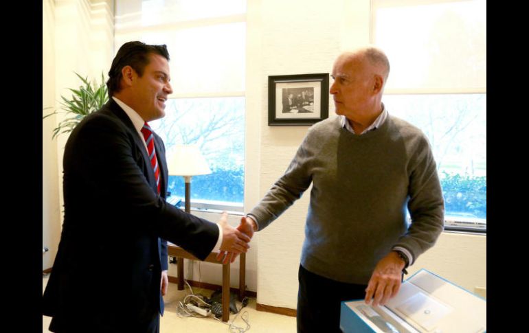 GUADALAJARA, JALISCO (14/FEB/2017).- El gobernador Aristóteles Sandoval Díaz se reunió hoy martes con su homólogo de California, Jerry Brown, quien manifestó disposición y apertura para trabajar con Jalisco en materia de migración, cambio climático, innovación y energías renovables.El gobierno de Jalisco agregó en un comunicado fechado en Sacramento, California, que lo anterior forma parte de la gira de trabajo del mandatario estatal por Estados Unidos.Añadió que durante el encuentro, con sede en el Capitolio estatal, en la ciudad de Sacramento, el Jefe del Ejecutivo estatal destacó como primer punto la necesidad de continuar la promoción de Jalisco como un polo de inversión rentable y sostenible, el cual debe ser fortalecido con el flujo de más inversiones de empresas estadounidenses.Además, solicitó al gobernador Jerry Brown integrar una agenda de trabajo conjunto en el tema de exportación de tecnologías y una política migratoria que pudiera apoyar a los connacionales jaliscienses ante las amenazas del presidente de Estados Unidos.Indicó que también presentó la invitación que envió a las empresas de tecnologías asentadas en el Silicon Valley, para ofrecer un santuario en Jalisco para mentes brillantes de todo el mundo que podrían verse afectadas por restricciones en las visas H-1B.El gobernador de Jalisco subrayó que el deseo es "tener una relación bilateral con el gobierno de California, para facilitar las cosas y que esta interacción no se detenga, que el talento, la creatividad, no tengan muros ni fronteras".Precisó que en el encuentro también se dio seguimiento a la agenda conjunta de combate al cambio climático, a través de una alianza estratégica para impulsar la Agencia de Energía recién creada en Jalisco.
