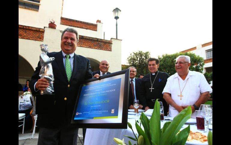 GUADALAJARA, JALISCO (05/JUN/2017).- EL INFORMADOR fue este año el medio de comunicación reconocido con el Galardón José Ruiz Medrano, que entrega la Arquidiócesis de Guadalajara a periodistas e instituciones por su trabajo informativo.Tras recibir el galardón, el director general y editor de esta casa editorial, Carlos Álvarez del Castillo Gregory, ponderó los esfuerzos cotidianos de todo el personal que trabaja en EL INFORMADOR por "tener un periódico cercano a nuestro pueblo, a nuestra ciudad".Insistió en el "honor y orgullo" que significa para este periódico llegar a diario a miles de hogares tapatíos en el contexto de su primer centenario de trabajo, que celebrará el 5 de octubre próximo: "Esperamos que el periódico EL INFORMADOR logre otros cien años, si es posible, con las generaciones venideras, gracias a la confianza de nuestra comunidad".En la ceremonia de este lunes en que fue entregado el Galardón José Ruiz Medrano, se destacaron las palabras de Juan Pablo II en torno a la verdad y la solidaridad como virtudes que convierten a los periodistas en "promotores de la paz".Al ahondar en ellas, el arzobispo de Guadalajara, cardenal Francisco Robles Ortega, subrayó el reconocimiento de la Iglesia al ejercicio de la comunicación como una actividad "absolutamente necesaria para la convivencia y el desarrollo de la vida en sociedad", e hizo énfasis en que debe hacerse sin importar la confesión de fe de los comunicadores.Subrayó que el esfuerzo de comunicación "constructiva y de calidad" está basado en valores como "el servicio a la verdad, el respeto a la dignidad individual y el aporte al bien común".Junto con esta casa editorial, fueron reconocidos José Pérez Ramírez, presidente de Promomedios Radio y quien ha sido presidente de la asociación Radiodifusoras y Televisoras de Occidente (Rato), y Ricardo García González Paúl, comunicador de Televisión Azteca.