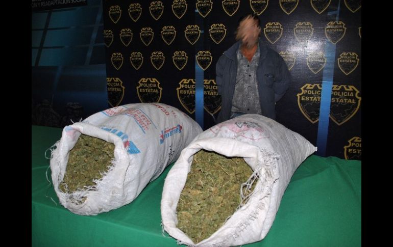 Jalisco | Fue encontrado a un costado de una camioneta gris Arrestan a un 'burrero' con más de 40 kilos de mariguana El hombre, vecino del rancho Hacienda del Padre Rigo fue encontrado a un costado de una camioneta gris Por: EL INFORMADOR 20 de noviembre de 2011 - 15:41 hs Rojas Márquez fue puesto a disposición de la Procuraduría General de la República para su investigación. / SAN CRISTÓBAL DE LA BARRANCA, JALISCO (20/NOV/2011).- Un "burrero" que cargaba con su droga por tierras del municipio de San Cristóbal de la Barranca, fue detenido en su camino por policías de la Secretaría de Seguridad Pública del Estado ( SSPE). En la base central de la SSPE fue presentado el hombre que se identificó como Francisco Rojas Márquez, de 40 años de edad, vecino del rancho Hacienda del Padre Rigo. Se explicó que el hombre transportaba 42 kilos 800 gramos de mariguana distribuido en cinco paquetes, pero fue sorprendido en la carretera Cuyutlán hacia San Cristóbal de la Barranca, a la altura del kilómetro cuatro del tiradero de basura del citado municipio. En ese lugar, los policías estatales vieron estacionada una camioneta Nissan gris, con placas JR-72492 y a un costado de ésta al detenido, que al percatarse de los policías intentó escapar pero fue capturado. "Sí, me la encontré en un rancho que yo trabajo, yo buscaba quién me la comprara (...) e iba a informar para que me la compraran", dijo el detenido. Posteriormente Rojas Márquez fue puesto a disposición de la Procuraduría General de la República para su investigación. EL INFORMADOR / OMAR RUVALCABA Temas Seguridad Decomisos de droga en Jalisco Secretaría de Seguridad Pública de Jalisco Mariguana Recibe las últimas noticias en tu e-mail Todo lo que necesitas saber para comenzar tu día Registrarse implica aceptar los Términos y Condiciones