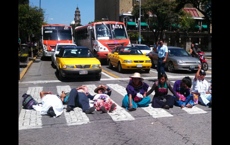 Jalisco | Piden la liberación de comerciantes detenidos por policías tapatíos Artesanos indígenas bloquean Alcalde Artesanos indígenas bloquean Alcalde, en su cruce con Hidalgo, para exigir la liberación de dos comerciantes detenidos por policías de Guadalajara Por: EL INFORMADOR 25 de septiembre de 2013 - 13:10 hs Mujeres y hombres se sentaron sobre el pavimento de la citada vía. / GUADALAJARA, JALISCO (25/SEP/2013).- Artesanos indígenas bloquean avenida Alcalde en su cruce con Hidalgo pidiendo la liberación de dos de los comerciantes que fueron detenidos por policías de Guadalajara “de manera violenta”. Decenas de policías se aglutinan en los alrededores de la Presidencia Municipal de Guadalajara. Los artesanos solicitan el diálogo con el alcalde Ramiro Hernández y la liberación de su compañeros; uno de ellos diabético. Les impiden instalarse afuera de Presidencia Gritos contra Ramiro Hernández "el represor", salían de las gargantas de cerca de 30 indígenas, quienes vendían sus artesanías sobre el andador Pedro Loza, al costado de la Presidencia Municipal de Guadalajara; mismos que eran custodidos por alrededor de 15 policías y otros inspectores que no dejaron instalar sus mantas y vender manualidades. Monserrat Martí, representante de los comerciantes, informa que hoy, desde temprano, se les impidió vender, por lo que comenzaron la protesta en las puertas del edificio en Avenida Hidalgo alrededor del mediodía. Los artesanos llegaron al lugar tras el operativo del mes de agosto liderado por el ex encargado de la Unidad de Inspección a Mercados y Comercios Espacios Abiertos, Juan José Larios, que los removió de la Plaza Tapatía. Desde hace 50 días, Martí solicitó un diálogo con funcionarios del Ayuntamiento, pero hasta ahora no han recibido respuesta y denuncia que han sido hostigados por inspectores y policías. "Vamos a seguir aquí hasta que nos quiera atender el señor (Ramiro Hernández)". "Hemos retrocedido muchísimo con la administración municipal, de ser institución que recibía a todas las personas que dejaran una queja, hoy ya está vigilado y nadie puede entrar; está secuestrada por el partido". La representante contrasta el discurso del presidente municipal contra el ambulantaje del Centro Histórico, ya que menciona que quiere hacer valer la ley pero "lo hace contra un grupo específico". "El Centro está repleto de comerciantes, no es que quiera hacerla valer la ley, sólo dar una imagen a los medios de comunicación de que combate el ambulantaje". Invita a buscar una solución total para los que laboran en el Centro. También, con el fin de buscar una postura ciudadana, los artesanos realizan encuestas a los transeúntes para conocer su opinión sobre el problema. En ellas cuestionan ¿Por qué crees que Ramiro Hernández expulsó a los artesanos? Y si se ven con malos ojos a los comerciantes indígenas. Hasta ahora han respondido cerca de mil personas; el próximo lunes se presentarán los resultados. EL INFORMADOR/ SAÚL PRIETO Temas Manifestaciones en Jalisco Indígenas Vialidad Avenida Alcalde Recibe las últimas noticias en tu e-mail Todo lo que necesitas saber para comenzar tu día Registrarse implica aceptar los Términos y Condiciones