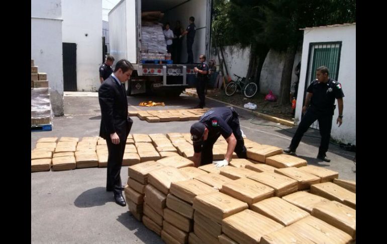 Jalisco | Policías federales realizan la inspección del vehículo donde encuentran 243 paquetes Aseguran camión con 1.2 toneladas de mariguana en Zapopan Policías federales realizan la inspección del vehículo donde encuentran 243 paquetes con droga Por: EL INFORMADOR 2 de septiembre de 2013 - 15:44 hs La droga fue llevada a las instalaciones de la PGR para realizarse una inspección más detallada. / ZAPOPAN, JALISCO (02/ASEP/2013).- La madrugada de este lunes, autoridades federales detuvieron un camión que transportaba más de una tonelada de mariguana, mismo que aseguraron y cuya droga decomisaron, informaron autoridades de la Procuraduría General de la República ( PGR). Fue hacia las 05:00 horas cuando un tractocamión sin rotular, pero de las características de pertenecer a una abarrotera o tienda de conveniencia, circulaba sobre la carretera a Colotlán, en Zapopan. Su destino era la ciudad de Fresnillo, Zacatecas. Policías federales que circulaban por dicha vía lo ubicaron y le marcaron el alto para realizar una inspección. Al abrir la caja del vehículo se percataron de que transportaba víveres; sin embargo, se dieron cuenta de que el fondo de la caja no se correspondía con la longitud exterior de la misma, por lo que, con fundamento en sospechas de que trasportaba algo más, se envió a las instalaciones de la PGR para que realizara una inspección más detallada. Fue en el edificio del Ministerio Público federal que procedieron a abrir la cubierta interior de la caja, tras lo que descubrieron que, efectivamente, se trataba de un doble fondo que dejaba un espacio de 61 centímetros oculto al fondo. En el interior, se hallaban 243 paquetes que contenían mariguana, constataron las autoridades. El peso total el cargamento era de una tonelada 200 kilogramos de la droga, por lo que se procedió a la detención del conductor del vehículo. La PGR informó que están por definir la situación legal de esta persona, que al parecer incurrió en delitos contra la salud. Temas Seguridad PGR Mariguana Recibe las últimas noticias en tu e-mail Todo lo que necesitas saber para comenzar tu día Registrarse implica aceptar los Términos y Condiciones