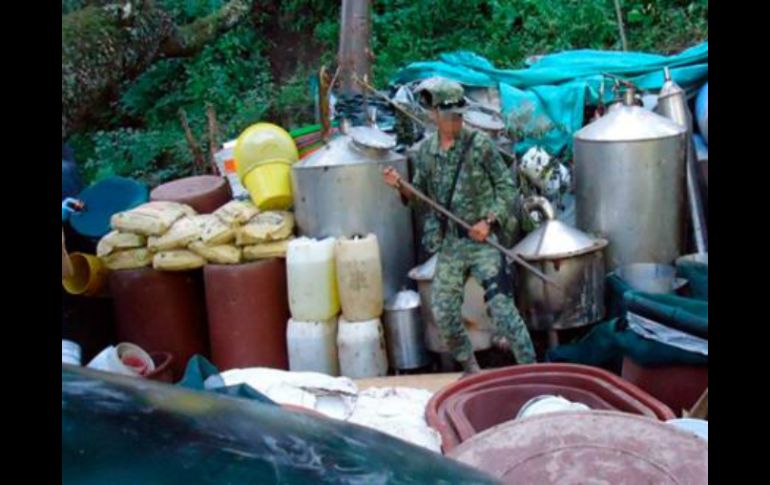 Jalisco | Elementos aseguraron 64 tambos con sustancias de color blanco, café y transparente Aseguran laboratorio para procesar droga en Ixtlahuacán Elementos aseguraron 64 tambos con sustancias de color blanco, café y transparente, sin determinar su composición química Por: NTX 1 de octubre de 2015 - 15:10 hs Los objetos asegurados quedaron a disposición del agente del Ministerio Público de la Federación. TWITTER / @PGR_mx CIUDAD DE MÉXICO (01/OCT/2015).- Elementos de la Agencia de Investigación Criminal (AIC) y de la Secretaría de la Defensa Nacional (Sedena) aseguraron un laboratorio clandestino para procesar droga sintética, durante un operativo realizado en Jalisco. Los hechos ocurrieron en dos predios ubicados en las inmediaciones del lugar conocido como "Arroyo El Ratón", en el municipio de Ixtlahuacán del Río, precisó la Procuraduría General de la República ( PGR). En esos sitios, de acuerdo con las investigaciones, se aseguraron 64 tambos con sustancias de color blanco, café y transparente, sin que hasta el momento se haya determinado su composición química. Además de 69 bidones con sustancias de color café, 56 costales con la leyenda "Tartaric Acid" que contenían 50 kilogramos de una sustancia de color blanco, y nueve costales con la leyenda "Caustic Sosa". También se decomisaron ocho alambiques de acero inoxidable, cuatro tubos condensadores de acero inoxidable y diversos tambos metálicos, entre otros objetos y utensilios. Los objetos asegurados quedaron a disposición del agente del Ministerio Público de la Federación, quien integra la averiguación previa correspondiente para deslindar responsabilidades. Durante la diligencia ministerial se contó con el apoyo de peritos en química forense, fotografía, ingeniería, arquitectura y criminalística de campo de la procuraduría. Temas Seguridad PGR Sedena Drogas Lee También Detienen a dos personas en la colonia La Estancia de Zapopan Fiscalía habría vinculado a proceso a más de 70 presuntos agresores de mujeres Decomisan coches con reporte de robo y armas en Teocaltiche Bomberos de Guadalajara controlan incendio en Lomas de Polanco Recibe las últimas noticias en tu e-mail Todo lo que necesitas saber para comenzar tu día Registrarse implica aceptar los Términos y Condiciones