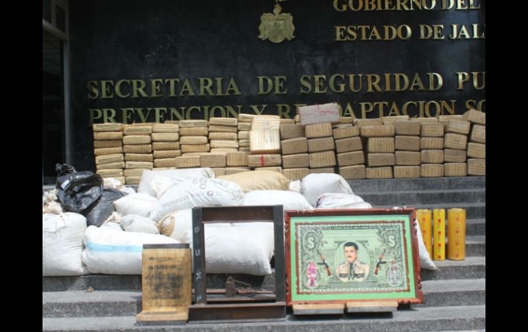 Jalisco | Se les decomisaron cuatro armas de fuego y dos vehículos Aseguran tonelada y media de mariguana en Tequila; hay cuatro detenidos Se les decomisaron cuatro armas de fuego, dos vehículos e implementos para empaquetar la droga Por: EL INFORMADOR 25 de septiembre de 2012 - 17:45 hs Entre lo asegurado están 17 costales con mariguana así como un cuadro de el ''Santo de los narcos''. ESPECIAL / GUADALAJARA, JALISCO (25/SEP/2012).- Con un cargamento de más de una tonelada y media de mariguana, fueron detenidos por elementos de la Dirección General de Seguridad Pública del Estado (DGSPE), cuatro sujetos, en el municipio de Tequila, Jalisco. A los inculpados también les aseguraron cuatro armas de fuego, dos vehículos e implementos para empaquetar la droga, así como un cuadro con la imagen de Jesús Malverde, el llamado "Santo de los narcos". Los hechos se registraron la mañana de este martes, por la brecha que conduce a la comunidad de Puerta de Enmedio (La Puerta de San Pedro), del municipio de Tequila, Jalisco, lugar donde los uniformados detectaron a un grupo de sujetos que se encontraban cargando una camioneta con varios paquetes de droga, por lo que de inmediato fueron detenidos. Se trata de quienes dijeron llamarse Efraín Cornejo de 31 años de edad, quien cuenta con antecedentes penales por el delito de robo; Horacio Guerrero, de 26 años de edad, quien también cuenta con antecedentes penales por el mismo delito; otro de los detenidos es Marcos Zambrano , de 40 años de edad, y Fernando Pérez, de 43; los cuatro con domicilio en el Municipio de Tequila, Jalisco. Artículos asegurados -Un fusil tipo AR-15, con 29 cartuchos útiles al calibre. -Un fusil tipo AK-47, con 29 cartuchos útiles al calibre. -Un arma calibre 9 milímetros, con cinco cartuchos útiles al calibre. -Una pistola 38 súper, con cinco cartuchos útiles al calibre. En el lugar se localizó un vehículo Bora, con placas JJX-5119, color blanco, modelo 2009, así como una camioneta Chevrolet pick up, con placas JE-68738, color azul metálico, modelo 1988, la cual estaba siendo cargada con parte de la droga que se aseguró. A un costado de ambos vehículos, los uniformados aseguraron 391 paquetes de droga envueltos en cinta canela; 17 costales con mariguana en greña; tres bolsas negras con residuos de mariguana; tres costales de semilla de mariguana, con un peso de 62 kilos, así como también un cuadro enmarcado de Jesús Malverde. También una prensa para empaquetar la droga. Todo lo anterior tuvo un peso aproximado de una tonelada con 568 kilogramos. Los detenidos, al igual que el enervante, las armas y los vehículos, fueron puestos a disposición del Ministerio Público de la Federación, para la integración de la averiguación previa correspondiente. Temas Seguridad Decomisos de droga en Jalisco Policía del Estado Lee También Hay más de mil viviendas afectadas por lluvias en Puerto Vallarta: Protección Civil ¿Cómo estará Guadalajara por la tarde; habrá lluvia? Puerto Vallarta en desgracia; tormenta deja daños y un muerto (FOTOS) Árbol cae sobre coche y camión de transporte público en Guadalajara Recibe las últimas noticias en tu e-mail Todo lo que necesitas saber para comenzar tu día Registrarse implica aceptar los Términos y Condiciones