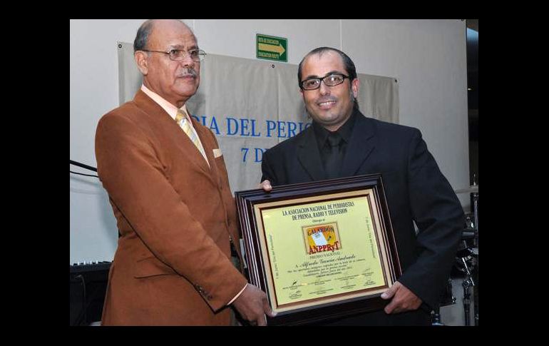 Jalisco | Galardonan a personajes de diversos sectores Asociación de Periodistas reconoce al reportero gráfico Alfredo García El galardonado Alfredo García Andrade es fotógrafo de esta casa editorial Por: EL INFORMADOR 6 de junio de 2011 - 04:14 hs El fotógrafo Alfredo García recibe el galardón de manos de Miguel Rivera, presidente de la Asociación Nacional de Periodistas. ESPECIAL / GUADALAJARA, JALISCO (06/JUN/2011).- La Asociación Nacional de Periodistas de Radio, Prensa y Televisión, que preside Miguel Rivera Delgadillo, entregó reconocimientos a personajes destacados en los ámbitos de la comunicación, empresarial, cultural y político. Alfredo García Andrade, de esta casa editorial, fue reconocido por su trabajo como reportero gráfico. Héctor Escamilla, Rafael Barajas Cisneros, Gabriela Salazar, Juan Víctor Arteaga, Isabel Sepúlveda, Juan Carlos Partida, Ignacio Pérez Vega, Abraham Martínez Caudillo, Gabriel Torres y Jesús Delgadillo también recibieron un galardón por su trayectoria. La asociación también reconoció a: Francisco Javier Hidalgo y Costilla, político priista; Antonio Álvarez Esparza, secretario de la CROC en Jalisco; Miguel Castro Reynoso, presidente municipal de Tlaquepaque; Jesús Alvarado Sandoval, profesionista; Mónica Abarca, activista, y Luis Manuel “El de la Paloma”, cantautor. Temas Periodismo Premios Municipios Lee También Viernes de tormentas en Guadalajara; aparecerán a esta hora Reconocen a Margarita Aranguren de Alfaro por una vida dedicada al servicio de los demás Entregan la cuarta edición del Premio a la Generosidad Jalisco Pronostican lluvia para Guadalajara este jueves 9 de octubre Recibe las últimas noticias en tu e-mail Todo lo que necesitas saber para comenzar tu día Registrarse implica aceptar los Términos y Condiciones
