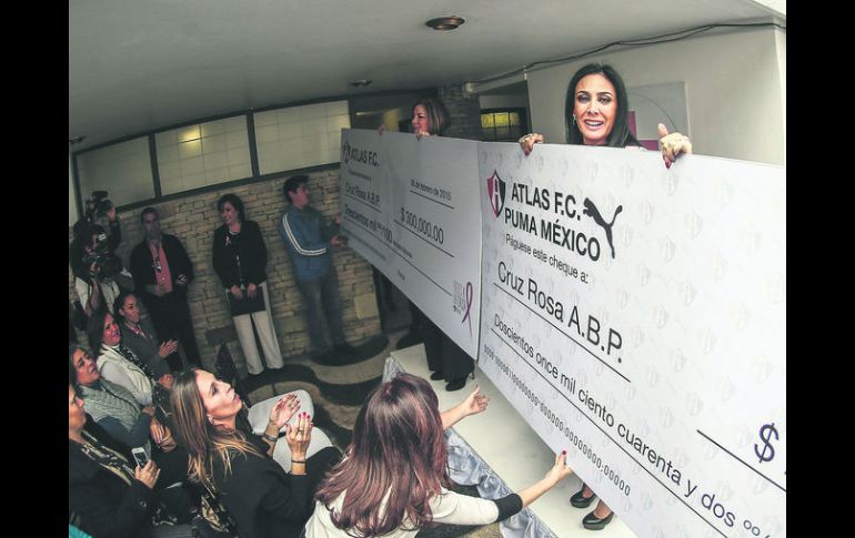Jalisco | Logran recaudar un total de 511 mil 142 pesos Atlas y Puma hacen donativo a 'Cruz Rosa' Con un par de cheques simbólicos, hacen entrega de un donativo por campaña contra el cáncer de mama Por: EL INFORMADOR 6 de febrero de 2015 - 23:45 hs Buen uso. La suma total beneficia a 43 mujeres de bajos recursos. ESPECIAL / GUADALAJARA, JALISCO (07/FEB/2015).- Fueron dados a conocer los resultados de la campaña sostenida por Atlas FC y Puma, en pro de las mujeres que padecen cáncer de mama. Benefactoras, pacientes y directivas de la fundación “Cruz Rosa”, que atiende a las féminas con este tipo de enfermedad, recibieron a María Laura Medina de Salinas Pliego, encargada de entregar los fondos recaudados con esta iniciativa. La campaña, sostenida en torneo del Club Atlas, logró recaudar un total de 511 mil 142 pesos, esto, dividido entre la venta de jerseys con tonos rosa, que utilizó la escuadra de los Zorros en su uniforme de visitante y local, que recaudó 211 mil 142 pesos, más los 300 mil pesos de un Minicooper. El donativo se hizo con un par de cheques simbólicos, entregados por María Laura Medina de Salinas Pliego, quien a su vez, resaltó la labor de “Cruz Rosa”, que en fusión con ambas marcas deportivas y de vestir, “se logró juntar esta suma, que favorecerá a muchas mujeres”, dijo, además de resaltar el papel de la mujer en la familia. “Si las mujeres estamos sanas, podemos hacer muchas cosas buenas por ella”, aseveró, y enfatizó en la prevención y la autoexploración como métodos preventivos. La esposa de Salinas Pliego, no descartó que Atlas se siga sumando a este tipo de iniciativas altruistas. María de los Ángeles Gortázar, directora de “Cruz Rosa” capítulo Guadalajara, tras recibir el donativo explicó el uso que se les dará a los recursos. La suma total beneficia, dijo, a 43 mujeres de bajos recursos diagnosticadas con cáncer de mama y a sus familias, con un número igual de becas. “Cada beca cubre costos de hospedaje, alimentación, atención psicológica y atención emocional”, explicó la directora de “Cruz Rosa”. EL DATOLa organización “Cruz Rosa” tiene un año de operaciones en Guadalajara. En este tiempo, lleva atendidos un total de 23 mil servicios. Temas Atlas Salud Cáncer de mama Lee También La edad de riesgo de padecer un trastorno mental, según expertos ¿Cuál es la diferencia entre los celos y la enfermedad de celotipia? ¿Cuánto tarda una persona con depresión en llegar al tratamiento? Razones por las que beber agua mineral en exceso afecta tus huesos y dientes Recibe las últimas noticias en tu e-mail Todo lo que necesitas saber para comenzar tu día Registrarse implica aceptar los Términos y Condiciones