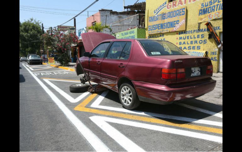 GUADALAJARA, JALISCO (22/ABR/2017).- La avenida Artesanos, una de las arterias por donde a partir del 8 de mayo circulará la primera ruta en el modelo empresarial, tiene señalamientos en el piso, delimitación de carriles, machuelos de banquetas en amarillo, paradas de autobús marcadas en la superficie de rodamiento y pasos peatonales. Sin embargo, los automovilistas no respetan la prohibición de estacionarse en el cuerpo lateral que será de uso preferente para los camiones; incluso, dejan sus autos sobre áreas pintadas con la indicación de paradas de autobús.Ante la invasión de los carriles laterales en ambos sentidos, las unidades de transporte público que en este momento circulan por Artesanos prácticamente cuentan con un carril, por lo que toman y dejan pasaje en el segundo cuerpo de circulación, a pesar de no estar permitido por las normas de movilidad.El tramo recorrido por avenida Artesanos comprendió de Huentitán a Juan Pablo II, y en distintos puntos se detectó a los autos estacionados en los carriles laterales, por donde de manera preferente circularán las unidades del nuevo corredor.Locatarios de avenida Artesanos mencionan que desde hace alrededor de dos semanas comenzaron a realizar el balizamiento en la arteria, sin embargo, ninguna autoridad les ha proporcionado información sobre el nuevo servicio de transporte.