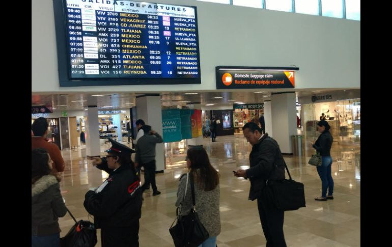 GUADALAJARA, JALISCO (01/FEB/2017).- Al menos una docena de vuelos sufren demoras y otros dos han sido cancelados esta mañana por un denso banco de niebla en las pistas del Aeropuerto Internacional Miguel Hidalgo de Guadalajara.A las 08:00 de la mañana, sobre las pistas de la terminal, la visibilidad no va más allá de unos 100 metros, lo que ocasiona la suspensión de aterrizajes y despegues.A esa hora, las pantallas de la terminal mostraban como "CANCELADO" el vuelo de Aeroméxico con destino a Torreón y Hermosillo (AM 2344); en tanto sólo se había dado aviso de abordar dos vuelos de Volaris, uno a la Ciudad de México y otro a Miami, Florida.Desde la apertura de la terminal a las 03:00 de la mañana, cientos de pasajeros deambulan por las salas de espera en las que se escuchan constantes cambios de horarios de salida.A esta situación de clima adverso, se suman las complicaciones para arribar a la terminal aérea puesto que un retén de la Policía Federal en el camino de ingreso limita la circulación a un solo carril.Según reportes de radio, los agentes de policía llegaron al punto desde la media noche para desalojar el plantón de ejidatarios de El Zapote en el aeropuerto tapatío.