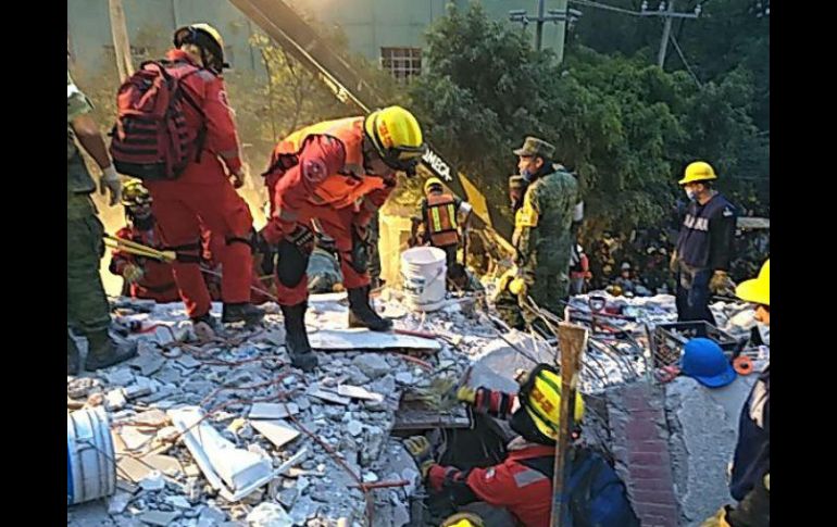 GUADALAJARA, JALISCO (20/SEP/2017).- Los Bomberos tapatíos llegaron esta madrugada a la Ciudad de México y en estos momentos participan en labores de rescate en la calle Amsterdam, de la colonia Condesa.El grupo USAR de Guadalajara está compuesto por cuatro células de trabajo. Reportan que en este momento dos de ellas están trabajando en una zona con un edificio de ocho niveles colapsado, en coordinación con personal de la Armada de México.Las autoridades ubicaron a una persona fallecida y otra con vida, por lo que realizan trabajos de penetración ya que la víctima se encuentra dos pisos abajo.