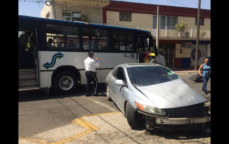 GUADALAJARA, JALISCO (25/MAR/2017).- Ocho lesionados leves, entre los que se encuentran dos menores, deja el choque entre un auto particular y un camión de la ruta 604 con número S-1688, en el cruce de las calles, San Idelfonso y Ramón Blancarte, de la colonia Santa María en Guadalajara.Ricardo Vázquez, primer oficial de Bomberos de Guadalajara, detalla que los lesionados sólo fueron valorados por los servicios médicos y no requirieron del traslado para su atención, debido a que los heridos firmaron un desistimiento."Un vehículo del transporte público de la ruta 604 el cual impacta a un vehículo Honda de modelo atrasado, con un saldo de seis adultos entre hombres y mujeres y dos menores. Únicamente fueron valorados por servicios médicos, por la Cruz Roja y por la ambulancia de esta dependencia (Bomberos Guadalajara)".