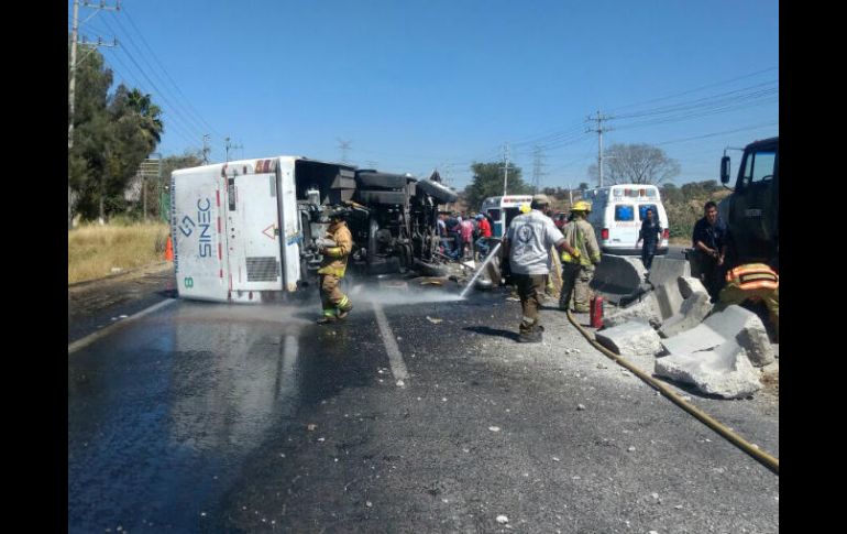 GUADALAJARA, JALISCO (24/FEB/2017).- Un camión de pasajeros que transportaba personal de una empresa volcó la tarde de este viernes sobre la carretera que conduce hacia Ameca, lo que dejó un saldo de 15 personas lesionadas, cuatro de ellas graves.El incidente se reportó hacia las 14:30 horas sobre dicha vía, a la altura de Los Chorros, en el municipio de Tala, informó la Unidad Estatal de Protección Civil y Bomberos.Ambulancias y unidades de rescate de Tala, de El Arenal, Teuchitlán y Etzatlán, así como de la UEPCB acudieron para trasladar a los lesionados a los puestos de socorros.Según los indicios y testimonios, el camión circulaba en dirección hacia Guadalajara cuando sufrió una falla mecánica, lo que ocasionó que el vehículo se dirigiera hacia la barrera divisoria. Al impactarla, el camión la brincó y volcó sobre los carriles contrarios.De los 30 pasajeros que viajaban en él, 15 resultaron con lesiones pero sólo cuatro de ellos, incluido el chofer, estaban graves. El tráfico se redujo a un carril lo que provocó conflictos viales.