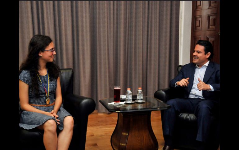 Jalisco | El gobernador ofreció a Olga Medrano todo el apoyo y respaldo del Gobierno de Jalisco Campeona de matemáticas se reúne con Aristóteles El gobernador ofreció a Olga Medrano todo el apoyo y respaldo del Gobierno de Jalisco Por: EL INFORMADOR 2 de mayo de 2016 - 16:15 hs Sandoval considera a Olga un ejemplo nacional, particularmente del Estado. ESPECIAL / Aristóteles Sandoval GUADALAJARA, JALISCO (02/MAY/2016).- Olga Medrano Martín del Campo, ganadora de la medalla de oro en la Olimpiada Europea de Matemática femenil, sostuvo un encuentro con el gobernador, Aristóteles Sandoval. En la reunión el mandatario estatal consideró a la joven como un ejemplo nacional, pero particularmente para Jalisco y para que otros estudiantes puedan esforzarse y alcanzar sus metas. Durante el encuentro, realizado en Casa Jalisco, el mandatario estatal ofreció a la joven todo el apoyo y respaldo del Gobierno del Estado para que la campeona, quien tiene 17 años, pueda consolidar una exitosa trayectoria y así replicar su experiencia en beneficio de niños y jóvenes jaliscienses. “Cuentas con todo el apoyo de nosotros, yo quería saludarte, conocerte y a nombre de los jaliscienses decirte que nos tienes muy orgullosos, pero que bueno es el inicio de una gran carrera”, puntualizó Sandoval. La joven tiene prevista una reunión con el Presidente Enrique Peña Nieto, y próximamente estará en preparación para la selección de finalistas que acudirán a la Olimpiada Nacional de Matemáticas de Hong Kong, considerada la competencia más importante de su tipo a nivel mundial. Temas Gobierno del Estado Matemáticas Estudiantes Aristóteles Sandoval Lee También Ebrard buscará evitar imposición de aranceles en su visita a EU Así se ve la carretera Guadalajara-Morelia en cámaras del C5 tras bloqueo Gobierno interviene en protesta de maiceros para liberar carreteras Sociales: Subasta de Arte, obras a beneficio de Helen Keller Recibe las últimas noticias en tu e-mail Todo lo que necesitas saber para comenzar tu día Registrarse implica aceptar los Términos y Condiciones