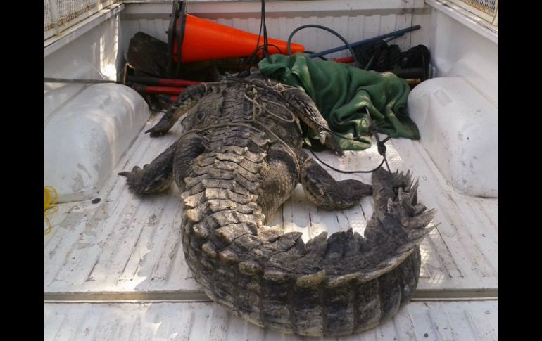 Jalisco | El réptil mide 3.20 metros de largo y tiene 250 kilogramos de peso Capturan un cocodrilo en playa Melaque El réptil mide 3.20 metros de largo y tiene 250 kilogramos de peso Por: EL INFORMADOR 23 de octubre de 2014 - 14:49 hs El animal no puso en riesgo la integridad física de las personas que se encontraban en la playa. ESPECIAL / GUADALAJARA, JALISCO (23/OCT/2014).- Elementos de Protección Civil de Jalisco capturaron este mediodía a un cocodrilo en la playa Melaque a la altura de la desembocadura del arroyo El Pedregal. El réptil de 3.20 metros de largo y 250 kilogramos de peso, no puso en riesgo la integridad física de las personas que se encontraban en la playa. El animal fue trasladado por personal de la dependencia a la Unidad de Manejo para la Conservación de la Vida Silvestre (UMA), ubicada en La Manzanilla. Temas Seguridad Protección Civil Jalisco Animales Cocodrilo Playa Lee También Astros de Jalisco toma ventaja sobre Xalapa en la semifinal de zona Detienen a presunto homicida en Lomas de Oblatos Puerto Vallarta es reconocida como la mejor ciudad pequeña de Latinoamérica Suspenden clases en estos 9 municipios de Jalisco ante el paso de tormenta tropical 'Raymond' Recibe las últimas noticias en tu e-mail Todo lo que necesitas saber para comenzar tu día Registrarse implica aceptar los Términos y Condiciones