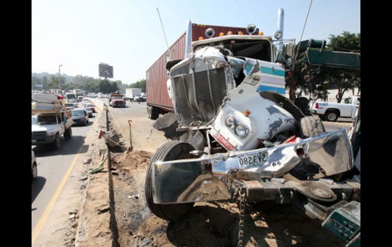 Jalisco | Un tráiler se estrelló contra varios automotores que estaban parados Carambola en Carretera a Chapala deja saldo de 53 lesionados Un tráiler se estrelló contra varios automotores que estaban parados, afectando un total de 16 Por: EL INFORMADOR 26 de octubre de 2010 - 04:18 hs El percance de ayer en la Carretera a Chapala originó el cierre de la vía por más de cuatro horas. A. CAMACHO / CHAPALA, JALISCO (26/OCT/2010).- Un tráiler que se quedó sin frenos provocó una impresionante “carambola” de 16 vehículos, cuyo saldo fue de 53 personas lesionadas. Los hechos ocurrieron minutos después de las 08:00 horas de ayer, sobre la Carretera Chapala, a la altura de la calle Plan de la Soledad, del Fraccionamiento Revolución, en el municipio de Tlaquepaque, en el sentido hacia la Calzada Lázaro Cárdenas. En ese momento había una fila de vehículos que esperaban la luz verde del semáforo que se ubica a la entrada del Fraccionamiento Revolución, la cual llegaba hasta a la altura de la calle Plan de la Soledad. Instantes después, un tráiler marca Kenworth que transportaba un contenedor, comenzó a pitar desde que bajaba del tramo conocido como curva del Tapatío, para luego estrellarse contra varios automotores que estaban parados. El impacto originó que un autobús de pasajeros de la Línea Guadalajara–El Salto saliera de la carpeta asfáltica, se volcara hacia la calle lateral y cayera sobre su costado derecho. Además de estas dos unidades, en el choque también participó un taxi del aeropuerto y otro del Sitio 22, un autobús particular de transporte de personal, una camioneta Chevrolet tipo pick up, una Peugeot Partner y una Nissan, perteneciente a una empresa de jugos. También un tráiler con doble semirremolque de una empresa de paquetería, otra camioneta Nissan pick up con caja cerrada, un Ford Topaz, un Ikon Fiesta y otro autobús de pasajeros de la Línea Guadalajara–El Salto. De las personas lesionadas, cinco de ellas fueron reportadas en estado de salud grave, mientras que el resto se reportó como de regular a leve. De los 16 vehículos involucrados, solamente 11 de los conductores quedaron retenidos y fueron llevados a declarar ante un agente del Ministerio Público, ya que el resto resultó con heridas que ameritaban su hospitalización. Sin embargo, el chofer del tráiler causante huyó del lugar. Temas Seguridad Accidentes Carretera Chapala Lee También México y Estados Unidos refuerzan cooperación en seguridad fronteriza Lemus afirma que no habrá impunidad desde el Estado en el caso de la detención de Nazario 'N' Intervención de la Policía de La Huerta, por posible desaparición forzada: Pablo Lemus Detienen en Guadalajara a presunto extorsionador; operaba en Jalisco y Puebla Recibe las últimas noticias en tu e-mail Todo lo que necesitas saber para comenzar tu día Registrarse implica aceptar los Términos y Condiciones