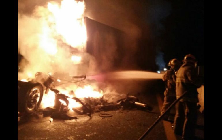 GUADALAJARA, JALISCO (24/MAR/2017).- Dos hechos viales ocurridos durante la madrugada de este viernes mantienen a la carretera a Colima cerrada por los trabajos de las autoridades, informó la Unidad Estatal de Protección Civil y Bomberos (UEPCB).El primer hecho fue un choque entre dos camiones de carga, una pipa de gas que se impactó contra un tráiler en el kilómetro 93, en el sentido hacia Colima. El hecho no dejó personas lesionadas; sólo se registraron daños considerables en el tráiler y no hubo labores de contingencia debido a que la pipa se trasladaba vacía.El segundo hecho ocurrió en el kilómetro 100, pero ahora en dirección de Colima hacia Guadalajara. Fue un incendio de un camión, el cual se quemó en su totalidad. De este incidente resultó un lesionado entre regular y grave. Fue este incidente el que provocó el cierre total de la vía debido a los trabajos que aún por la mañana continuaban.