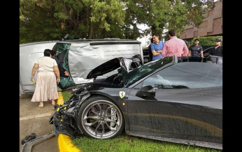 GUADALAJARA, JALISCO (06/SEP/2017).- Un choque con volcadura protagonizado por un Ferrari valorado en al menos 4.8 millones de pesos y una camioneta Jeep, dejó como saldo cinco personas con lesiones leves. El accidente ocurrió la tarde de este miércoles en la colonia Jardines Vallarta, en Zapopan. Al parecer, el vehículo deportivo conducía a exceso de velocidad sobre la avenida Novelistas, cuando perdió el control del volante e impactó contra una camioneta Jeep que terminó volcada en su costado izquierdo, ambos sobre el camellón al cruce con la calle Carlos Dickens. Los tripulantes de la camioneta: el conductor, una mujer y tres menores, fueron valorados con lesiones leves por Servicios Médicos Municipales, sin embargo, firmaron el desistimiento médico para esperar el pase de sus aseguradoras. El conductor del vehículo de lujo corrió con mayor suerte pues la cabina del automóvil quedó intacta, además se activaron las bolsas de aire y evitaron así que el piloto sufriera daños mayores. El vehículo deportivo, modelo Ferrari 458 spider 2014, valorado en aproximadamente cuatro millones 810 mil pesos, importado desde Italia, había sido emplacado recientemente con placas jaliscienses y actualmente formaba parte de un club de autos conocido como "Road Kings", al que sólo pueden pertenecer vehículos deportivos, de lujo o exóticos, según su propia descripción. Carlos David Wolstein, a cargo del despacho de seguros Wolstein y Asociados, explicó que el seguro vehicular de estos autos sólo puede ser valuado con factura en mano pero estimó que para un vehículo de este costo podría pagarse alrededor de 300 mil pesos anuales por asegurarlo.