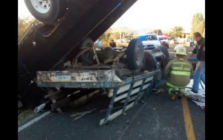 GUADALAJARA, JALISCO (16/FEB/2017).- Un hombre de 69 años murió y una mujer resultó con graves lesiones al chocar dos camionetas en la carretera Poncitlán-Zapotlán del Rey, informó la Unidad Estatal de Protección Civil Jalisco.Los vehículos se impactaron poco antes de las 17:30 horas a la altura del kilómetro 8, en el lugar conocido como La Colonia, con tal fuerza que una de ellas quedó volteada y la otra, también con las llantas al aire, apoyada sobre la primera.Se trata de una Chevrolet negra, caja larga, placas JJ07232 de Jalisco, y una camioneta azul, de redilas y modelo atrasado, placas JJ24761 de Jalisco.Los paramédicos que llegaron a ayudar a las víctimas, quienes viajaban en la camioneta de redilas, hallaron sin vida a Jesús Mendoza Becerra, de 78 años de edad.Además tuvieron que hacer maniobras de extracción para rescatar a Josefina Garibay Gutiérrez, de 74 años, quien fue trasladada por Cruz Roja de Ocotlán al Hospital San Vicente, en estado grave.