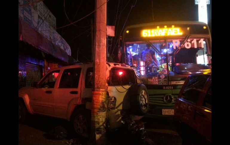 GUADALAJARA, JALISCO (20/FEB/2017).- Un chofer de la ruta 611 chocó su camión contra una camioneta estacionada, al parecer a causa de que sufrió un infarto a bordo de la unidad; el accidente ocurrió poco antes de las 21:00 horas de esta noche y, tras más de una hora de atención médica para salvarle la vida, el conductor falleció. Los testigos que hablaron con paramédicos y bomberos de Guadalajara aseguraron que el camión viajaba por la zona de la Hermosa Provincia cuando, cerca del cruce de las calles Presa del Laurel y Tintero, poco antes de la calle Peso, el chofer se desvaneció sobre el volante. El camión con el número S-0231 se fue de lado y golpeó a una camioneta Cherokee blanca, que estaba estacionada. No hubo personas lesionadas por ese impacto. El chofer fue identificado como Francisco Daniel Romero, de 61 años de edad, y Bomberos de Guadalajara informó que los médicos que intentaron salvarlo declararon su deceso a las 22:22 horas.