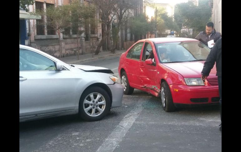 GUADALAJARA, JALISCO (10/FEB/2917).- La mañana de este viernes se registró un fuerte choque en la Zona Centro de Guadalajara.Los hechos sucedieron en el cruce de las calles Pino Suárez y Juan Manuel, en el primer cuadrante del Centro tapatío.En el percance se vieron involucrados dos vehículos particulares, un automóvil modelo Camry color plata que impactó de costado a un Jetta rojo y lo proyectó algunos metros.En el incidente sólo la copiloto resultó lesionada, una mujer de aproximadamente 30 años que fue valorada por paramédicos de Protección Civil. Sin embargo, la lesionada decidió esperar el pase médico de su aseguradora.El percance ocasionó gran carga vehicular pues sólo quedó disponible un carril para circular sobre Juan Manuel, una de las vías principales ante los cierres viales ocasionados por la construcción de la Línea 3 del Tren Ligero.
