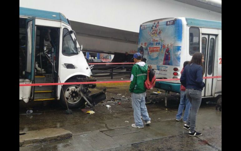 Jalisco | El incidente involucra una unidad de la ruta 27, otra de la 258, y una camioneta Choque entre camiones deja ocho heridos El incidente involucra una unidad de la ruta 27, otra de la 258, y una camioneta particular Por: EL INFORMADOR 28 de julio de 2016 - 13:42 hs El operador de la ruta 258 y la conductora de la camioneta fueron retenidos para deslindar responsabilidades. ESPECIAL / GUADALAJARA, JALISCO (28/JUL/2016).- Dos unidades del transporte público y un vehículo particular participaron en un choque en Avenida Juan Pablo II y Circunvalación, lo que dejó un saldo de al menos ocho personas heridas. En el incidente se vieron involucradas una unidad de la ruta 27 y otra de la ruta 258, así como una camioneta. Versiones extraoficiales señalan que uno de los camiones estaba parado por una descompostura, posteriormente fue impactado por detrás por la unidad de la ruta 258, que a su vez sufrió otro golpe trasero por parte del vehículo particular. Las personas heridas fueron trasladadas a distintos puntos de la ciudad para ser atendidos; mientras que el operador de la ruta 258 y la conductora de la camioneta fueron retenidos hasta deslindar responsabilidades. El mes pasado la ruta 258 se vio involucrada en el atropellamiento de un ciclopolicía de Guadalajara, quien perdió la vida luego de las complicaciones a raíz del accidente. Este derrotero es uno de los autorizados para cobrar siete pesos por pasaje. El accidente provocó un congestionamiento vial en la zona debido a las labores de personal del Instituto Jalisciense de Ciencias Forenses y de la Secretaría de Movilidad (Semov). Temas Seguridad Transporte Público Accidentes Lee También Transporte escolar, gran idea y eterna promesa Rutas de camiones que presentan retrasos en sus derroteros HOY en la ZMG Aeropuerto Internacional de Guadalajara estrena servicio de shuttle Fiscalía habría vinculado a proceso a más de 70 presuntos agresores de mujeres Recibe las últimas noticias en tu e-mail Todo lo que necesitas saber para comenzar tu día Registrarse implica aceptar los Términos y Condiciones