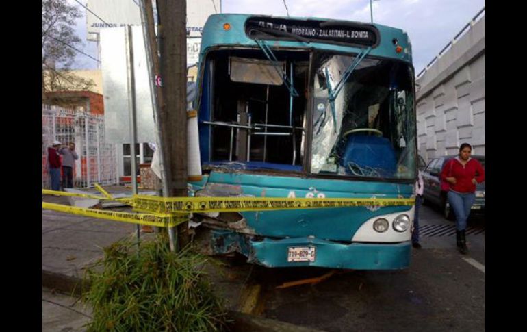 Jalisco | Una unidad de transporte público protagoniza espectacular colisión Choques complican vialidad matutina en la ciudad En avenida Vallarta a su cruce con Patria, una unidad del transporte público de la ruta 45-A, se impactó contra un negocio ubicado con dicha intersección. Por: EL INFORMADOR 17 de febrero de 2012 - 10:16 hs Imagen del camión de la ruta 45-4 en Vallarta y Patria. Publicada en Twitter por @CarL0sL0za. ESPECIAL / GUADALAJARA, JALISCO (17/FEB/2012).- Varios percances viales se registraron esta mañana en distintos puntos de la Zona Metropolitana de Guadalajara, los que causaron complicaciones viales en varias arterias importantes de la urbe. En avenida Vallarta a su cruce con Patria, una unidad del transporte público de la ruta 45-A, se impactó contra un negocio ubicado con dicha intersección. Según reportó el noticiario matutino de Televisa Guadalajara, sólo una persona resultó lesionada tras el impacto, la víctima se encontraba en la confluencia de las avenidas y fue arrollada por el camión. Hasta el momento se desconoce el estado de salud y su identidad. Con respecto al reporte presentado en la estación radiofónica Notisistema, al conductor del vehículo se le aplicó un examen para saber si se encontraba bajo el influjo de alguna sustancia, a lo que el resultado de la prueba dio negativo. Dos choques más Otros dos accidentes se registraron; el primero sobre avenida México y Terranova en el municipio de Guadalajara, un vehículo derribó el semáforo que se encuentra al cruce de las vialidades Por otro lado, sobre la avenida Lázaro Cárdenas en su entronque con la carretera a Chapala, el choque de dos vehículos genera carga vehícular en la arteria que conecta con la Guadalajara. En todos los casos, las complicaciones viales persisten en los puntos señalados. Temas Accidentes Vialidad Carretera Chapala SVyT Calles y vialidades de Guadalajara Recibe las últimas noticias en tu e-mail Todo lo que necesitas saber para comenzar tu día Registrarse implica aceptar los Términos y Condiciones